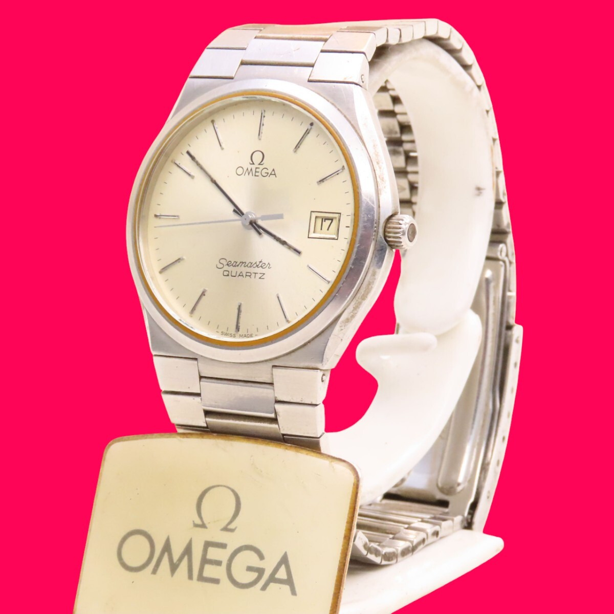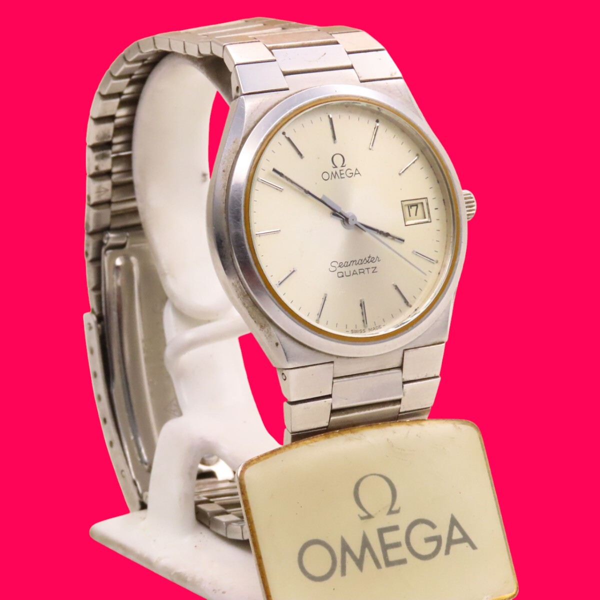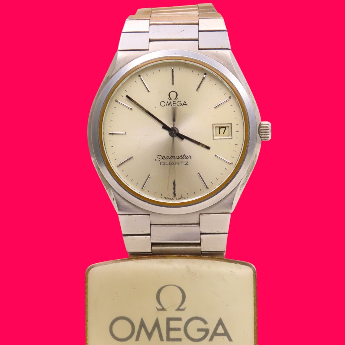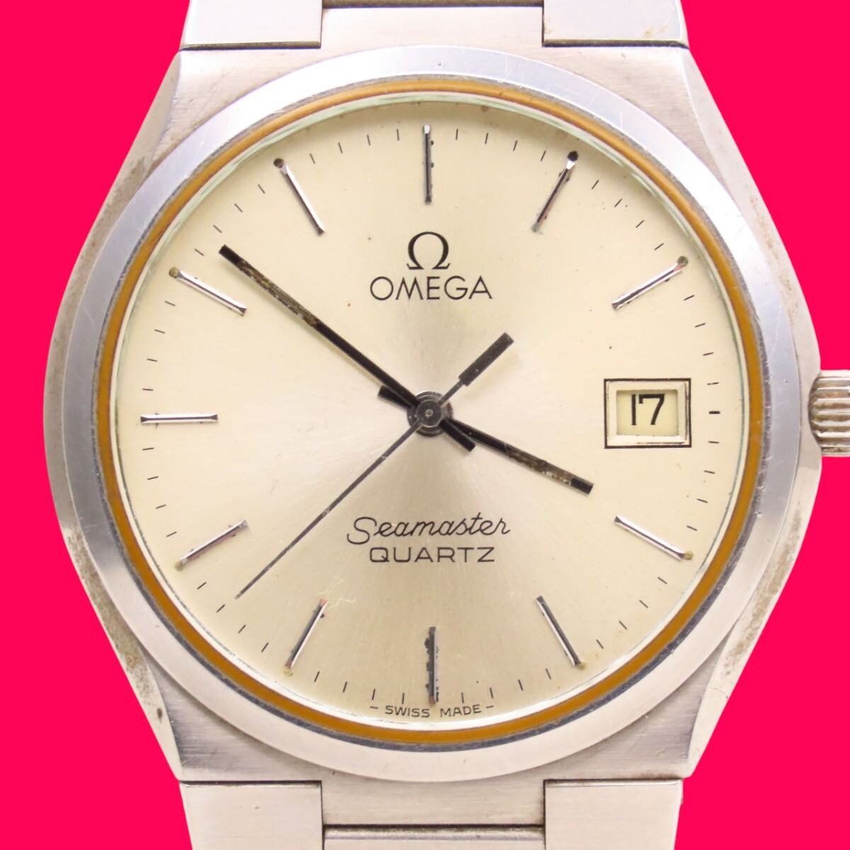 ■♪価格高騰! 資産価値!稼働 電池新品 メンズ ビンテージ 高級超レア! OMEGA オメガ シーマスター Seamaster デート クオーツ フルオリジナル