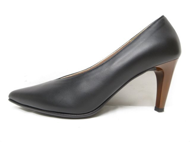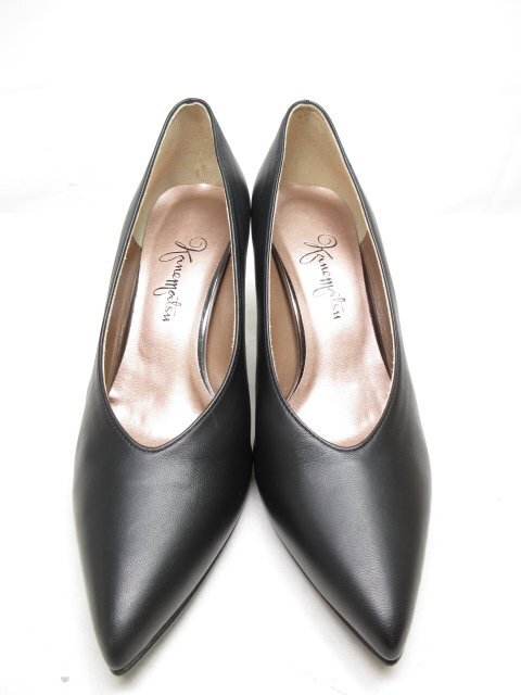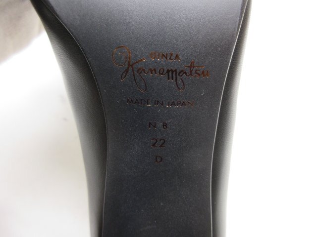 極美品【銀座かねまつ GINZA Kanematsu】 レザー ポインテッドトゥ パンプス ハイヒール 靴 (レディース) size22D ブラック ◇37LZ5045◇