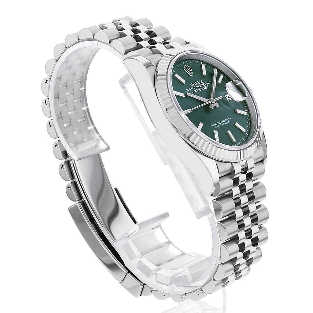 | モデル情報 | 1945年に誕生し、今やロレックスの顔とも言える"デイトジャスト"。ロレックスの三大機構(オイスターケース、パーペチュアル機構、デイトジャスト機構)を全て備えたモデルです。ダイアル色・ケース素材などの組み合わせは多岐に渡り、非常に多彩なバリエーションが存在するのが最大の魅力です。 |