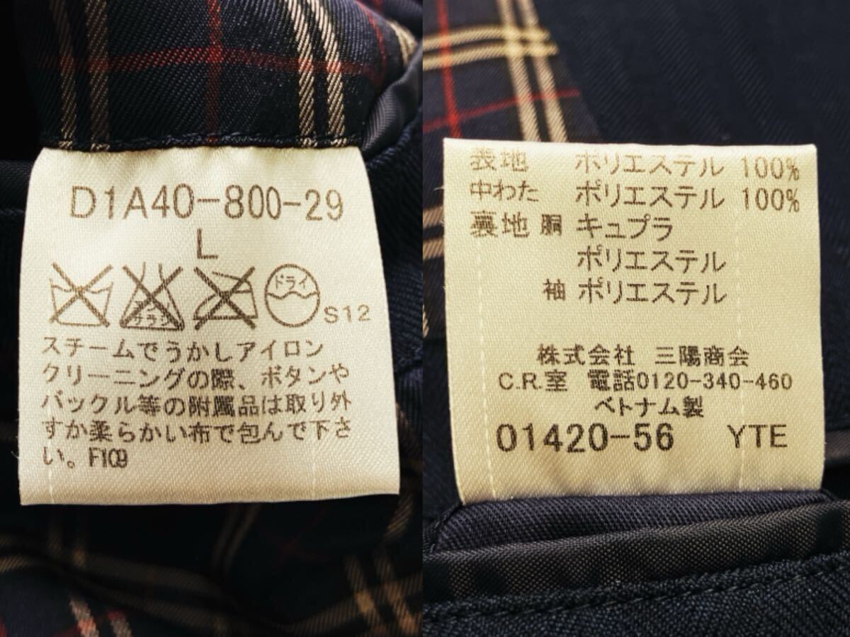 定価万 ・高価なコーデ ・キレイめコーデ ・春の1着 カラー:ネイビー系 サイズ: L 着 丈:約 78cm 身 幅:約 54cm 肩 幅:約 48cm 袖 丈:約 63cm ※サイズ表記に関しては製造国によって違いがあります。平置きでの実測値を参考にしてください。 【素 材】表地:綿 ポリエステル 【ランク】5~4 【状態】綺麗 5 数回使用程度の超美品 4 多少の傷・汚れがあるが程度良好の美品 3 一般的な使用感のあるお品 2 傷・汚れがあり使用感を感じるUSED品 1 傷・汚れなどが多く見受けられる 平置きで直線でしているおります。多少の誤差はご容赦ください |