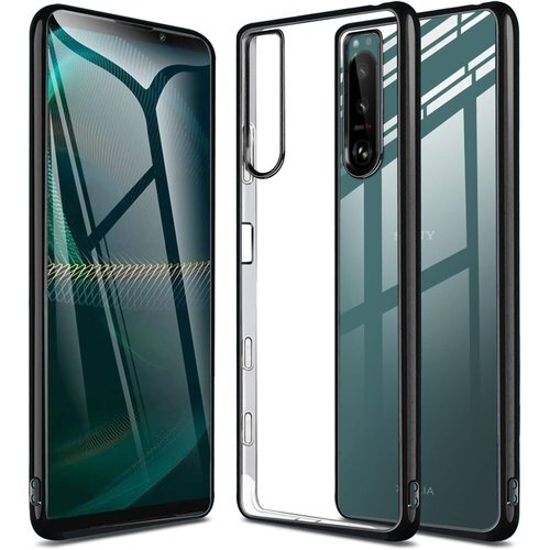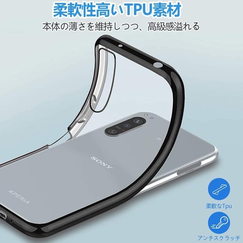 BEVZA Xperia 5 III ケース クリア 黒 SO-53B SOG05 スマホケース エスクペリア5iii カバー 耐衝撃 ソフト tpu 薄型 透明 背面クリア 黒縁 メッキ加工 ストラップホール付き 超軽量 紫砂ブラック 409