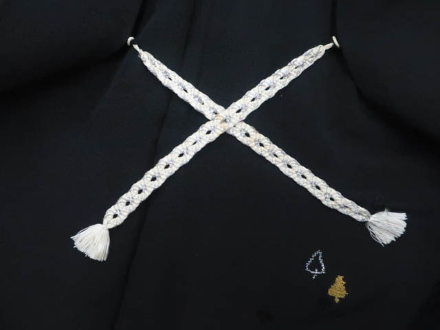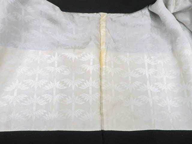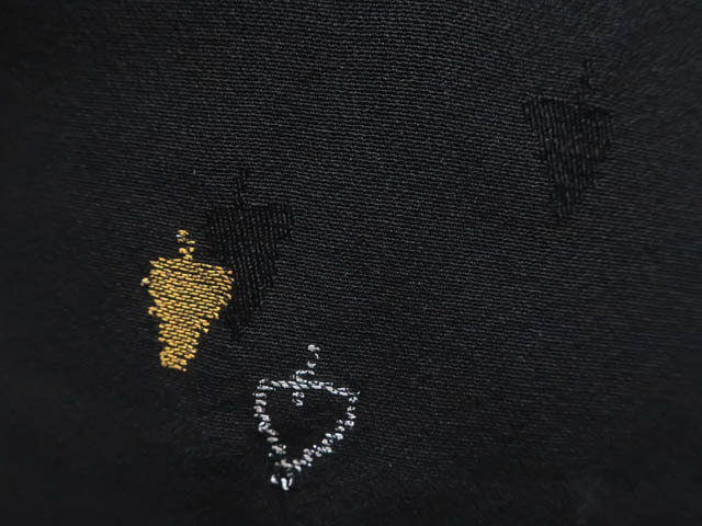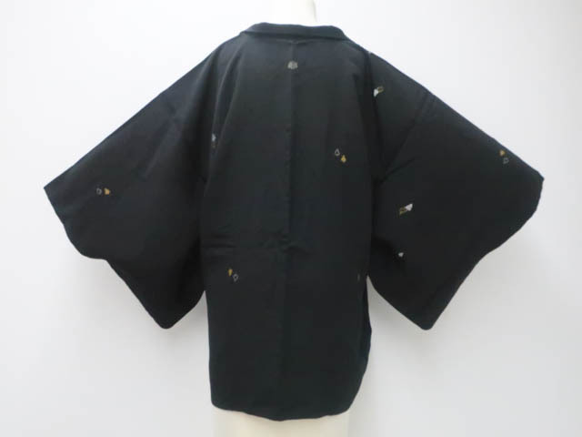 リサイクル商品のため、全体所々にしみ汚れがございますが着用可能なお品です。 地色は 黒です。 1枚目の画像が近いお色かと思われます。 素材は正絹です。 |