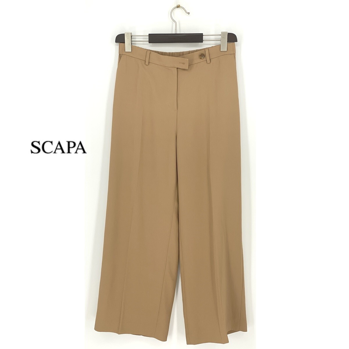 B0391/極美品 SCAPA スキャパ トリアセテート ウエストゴム イージー テーパード スラックス ワイドパンツ 40 L程 ベージュ レディース