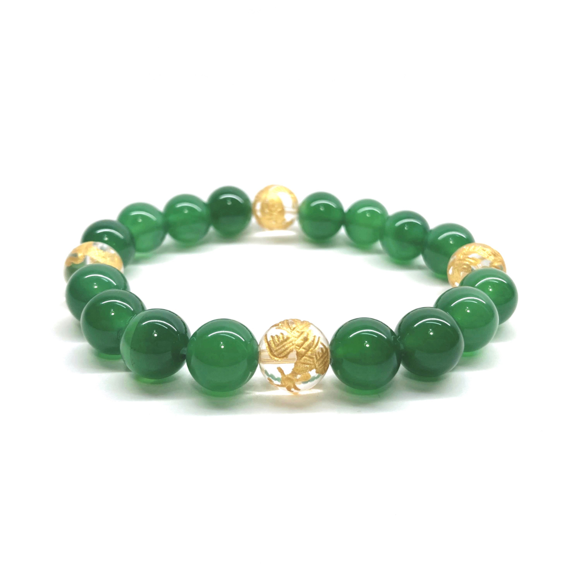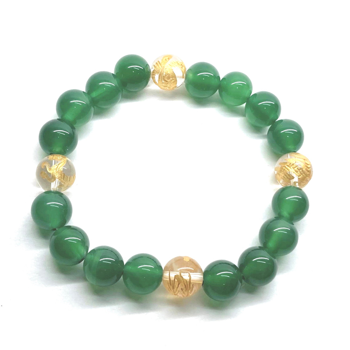 10mm 四神獣金彫水晶×緑瑪瑙 パワーストーン ブレスレット天然石 運気上昇 開運 金運 恋愛運 青龍 白虎 玄武 朱雀 シンプル ☆