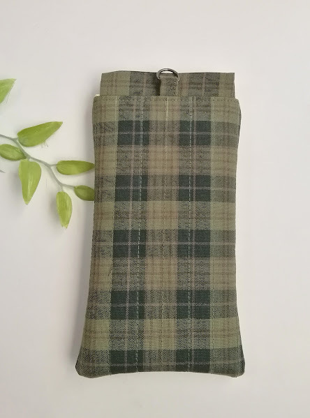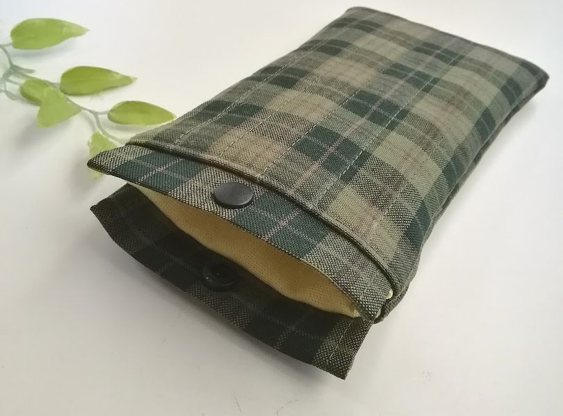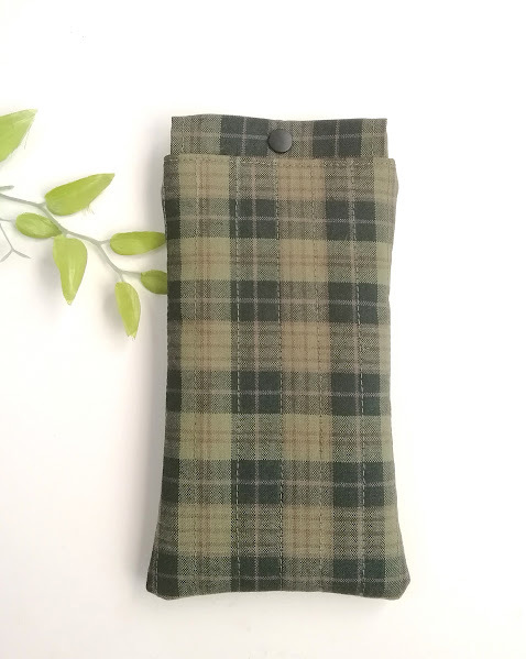 ハンドメイド〈キルト芯でふんわり仕上げ〉Dカン付き・眼鏡ケース 尾州産/クラシックチェック (18×9.5)