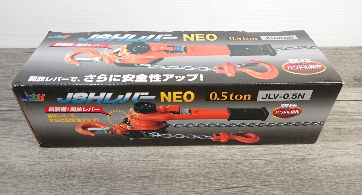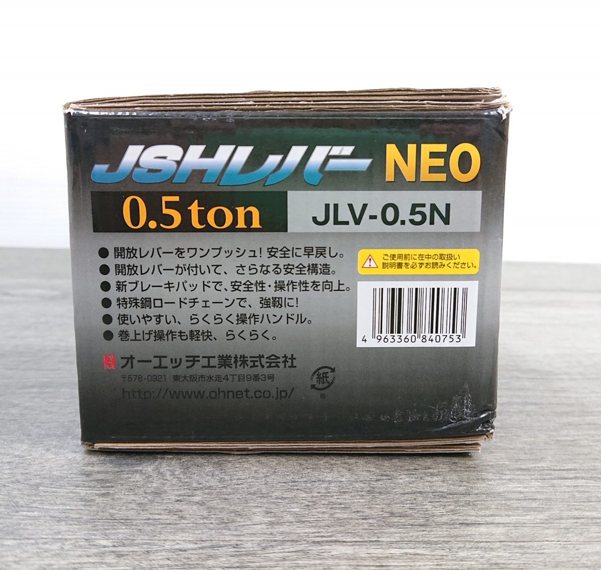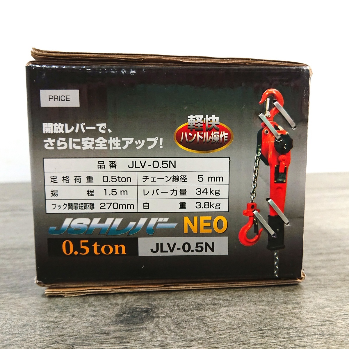 未使用品【 JSH / オーエッチ工業 】JLV-0.5N レバーホイストネオ レバーブロック 0.5t 解放レバー付き ※箱破れあり 4837