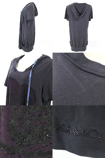 | 大きなバラのプリントが存在感たっぷり☆ キラキラと輝くブラックストーンをあしらい、華やかさをプラス☆ ゆったりとしたシルエットでお洒落しながら楽にお召しいただける逸品です。 気になる腰周りをカバーしてくれるチュニック丈も嬉しいですね! 首周りに線状の薄汚れが見られます。全体的に気にならない程度の 毛羽立ちが見られます。 着丈約87cm 袖丈18cm 肩幅42cm バスト約96cm 【サイズ】:(表記なし) 【素 材】:(コットン100%) 【 色 】:(チャコールグレー) 【程 度】:(AB) **** 12150520-002 247 025 | ||||