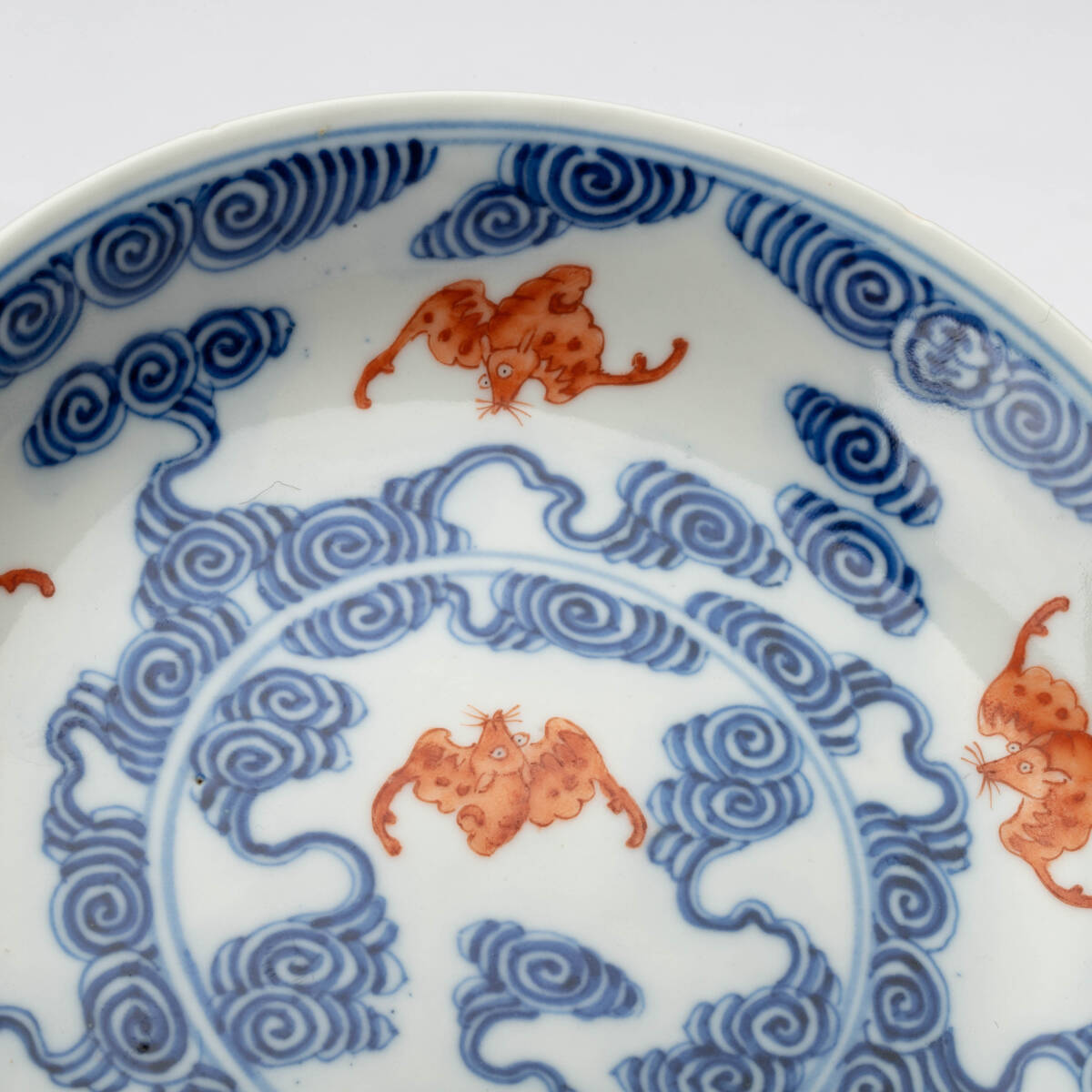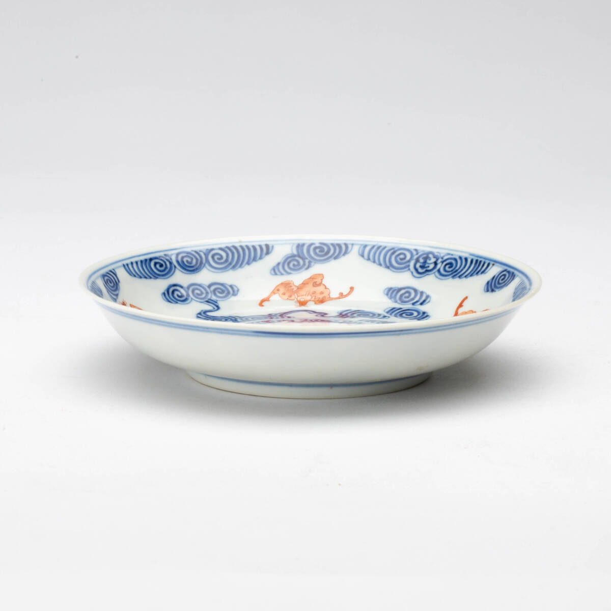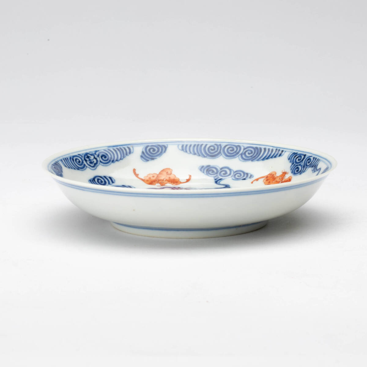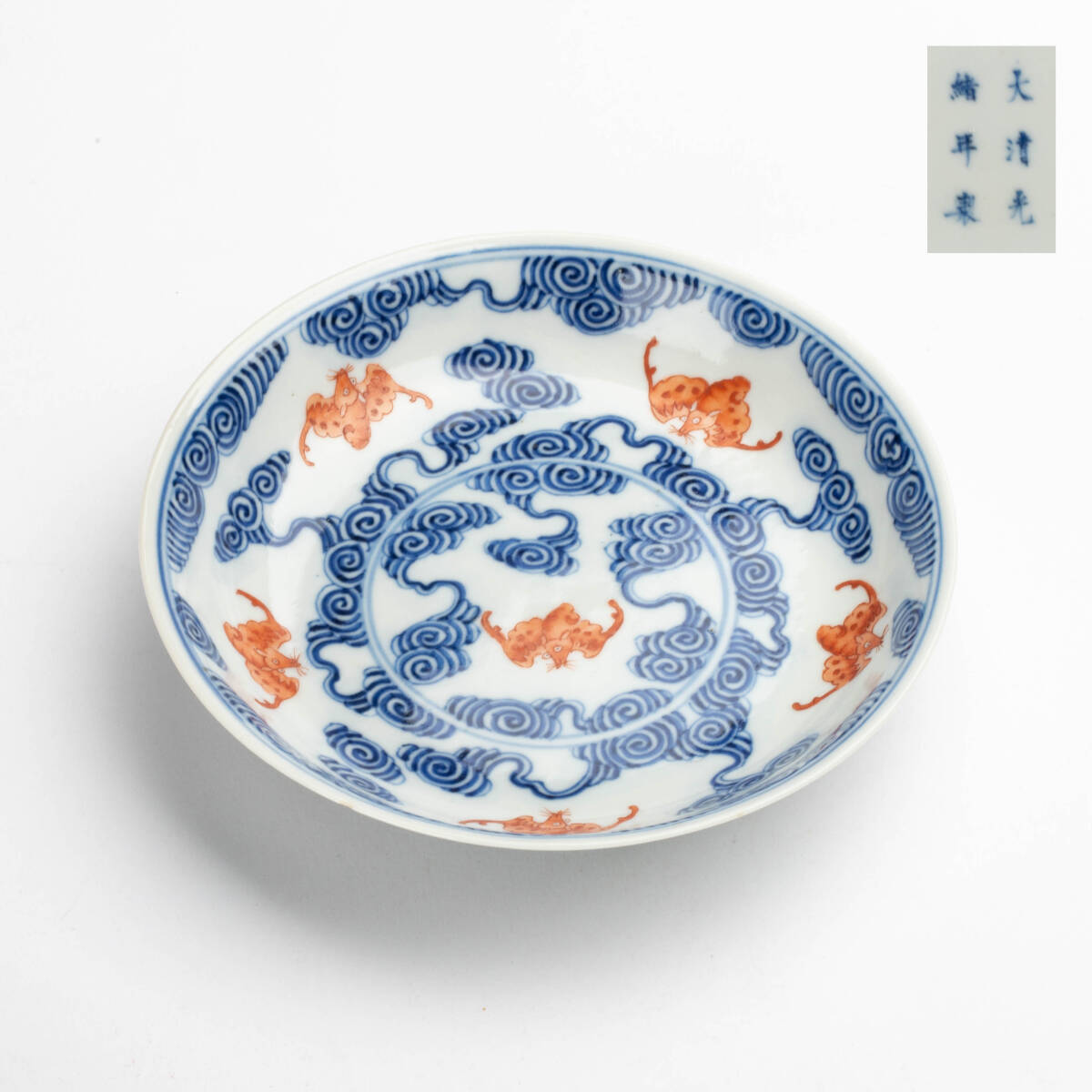 清光緒 青花 礬紅 雲蝠 紋盤 瓷器 在銘