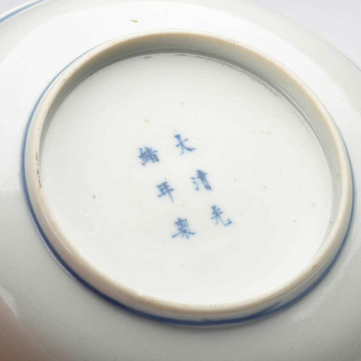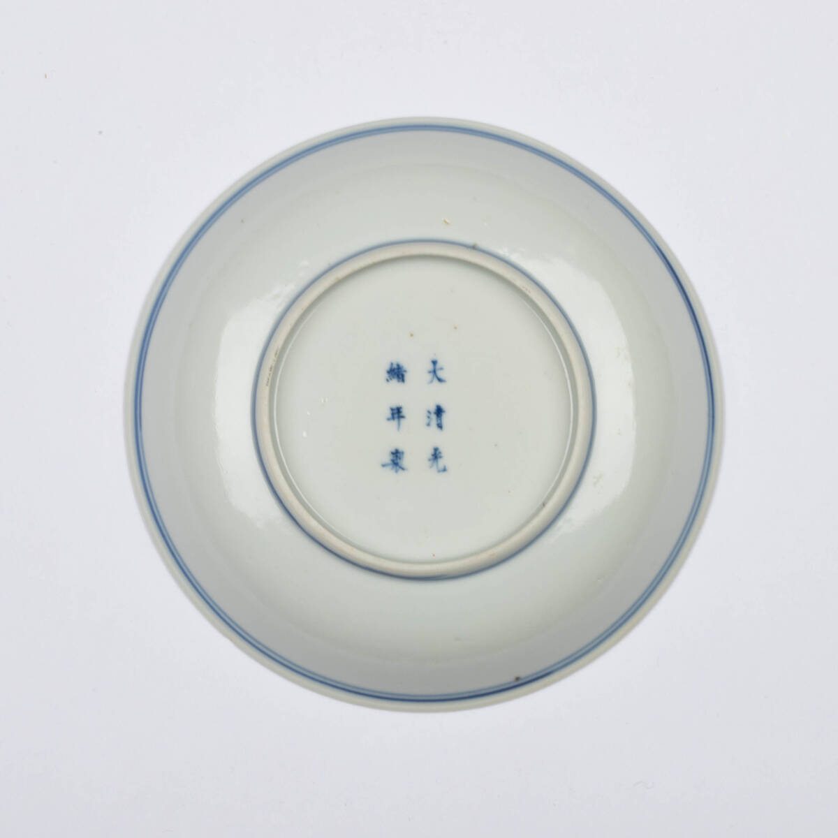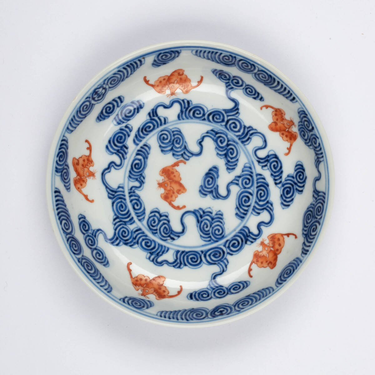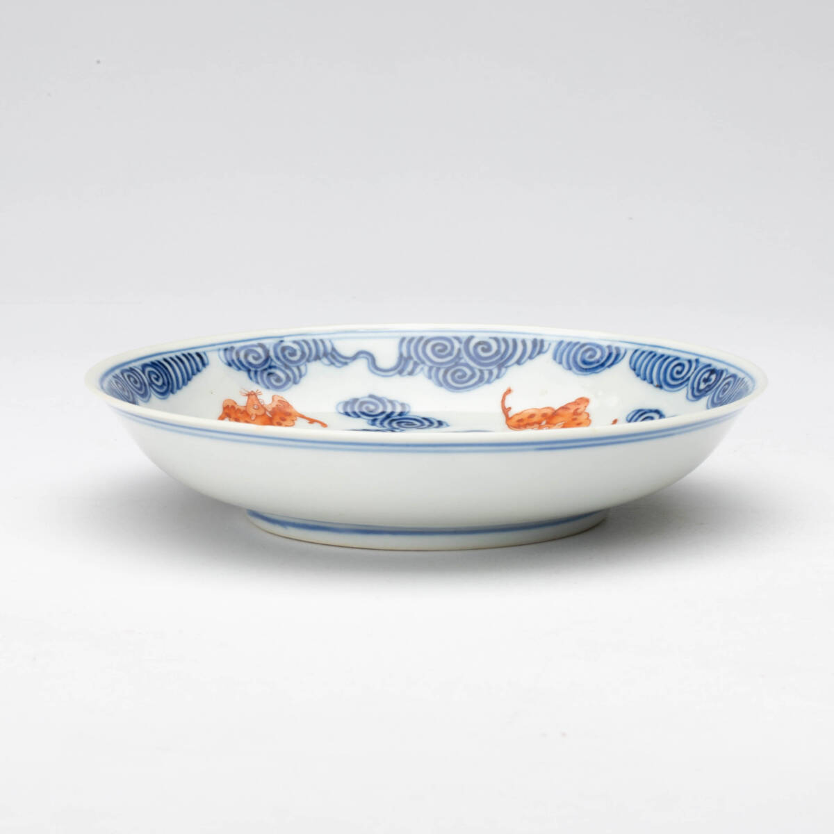 清光緒 青花 礬紅 雲蝠 紋盤 瓷器 在銘