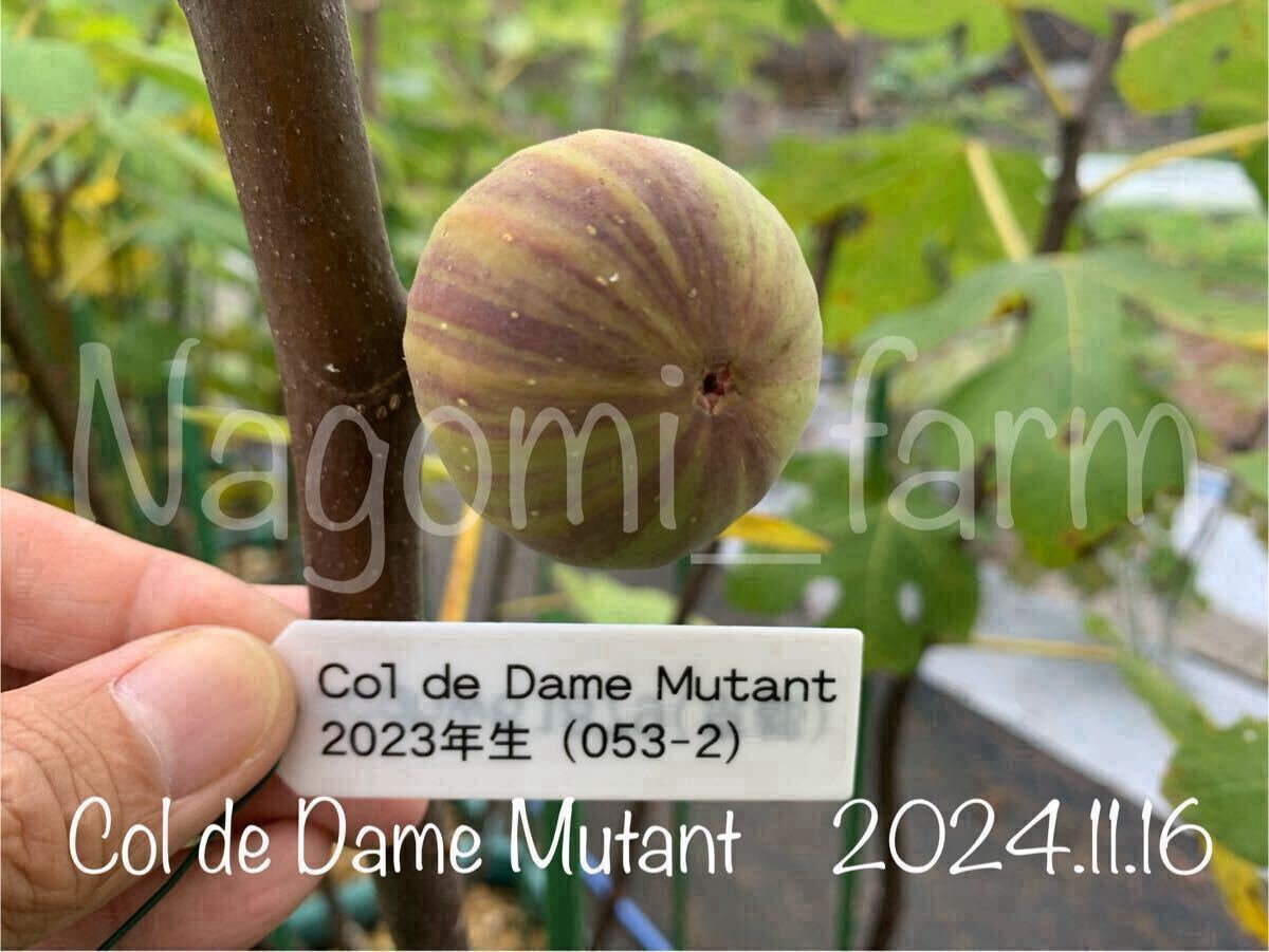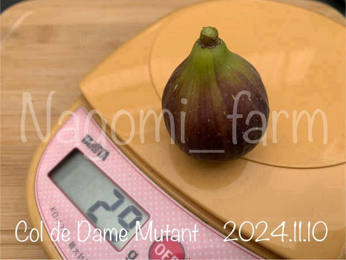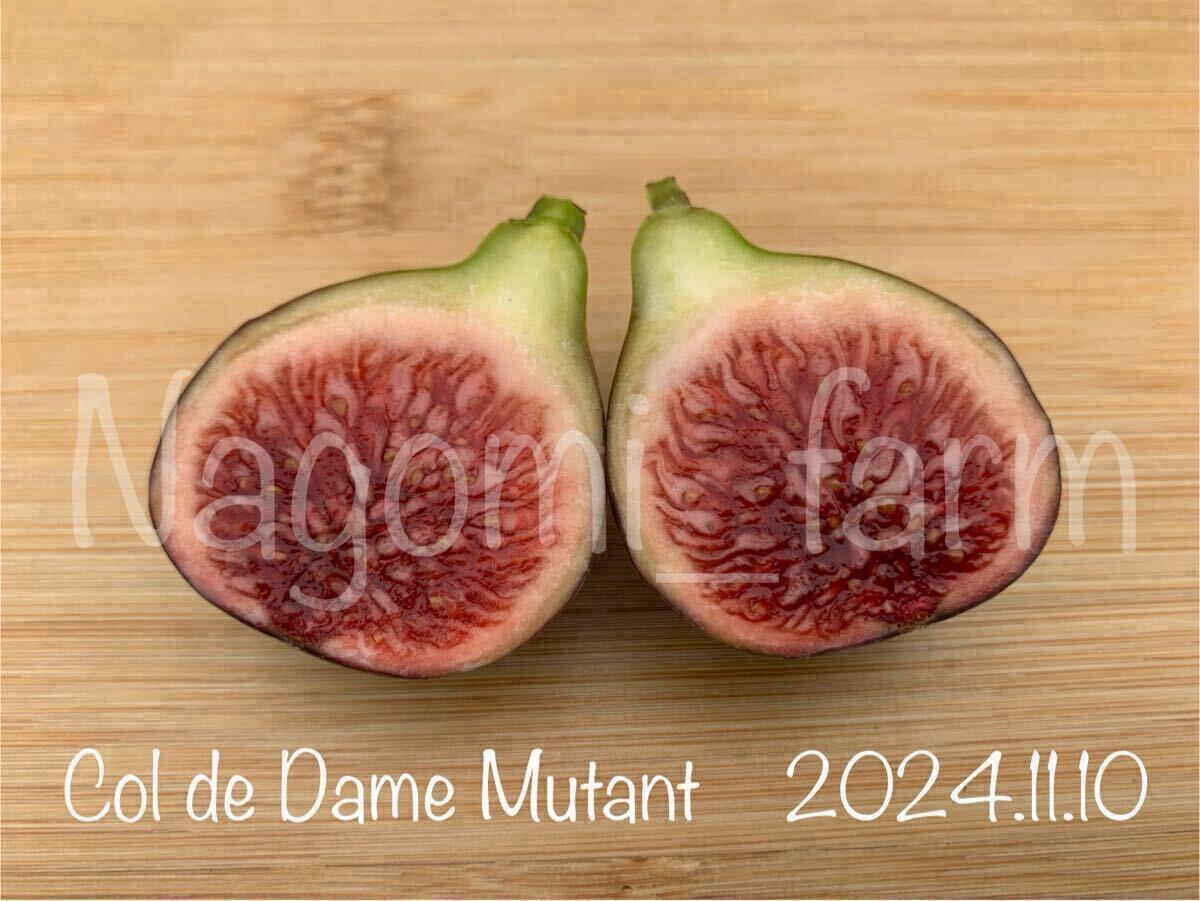 母木は、2023年5月に当オークションを通じて京都のマニアの方から山梨の巨匠由来の穂木を導入しました。昨年、2年生の母木から写真のような完熟果が収穫でき、果実の外観や食味の特徴から品種違いの可能性は低いと考えられます。