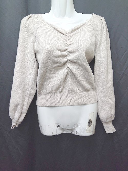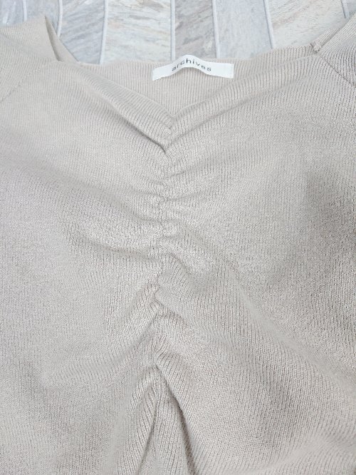 ◇ archives アルシーヴ フロントギャザー 長袖 ブラウス カットソー サイズM ベージュ レディース P