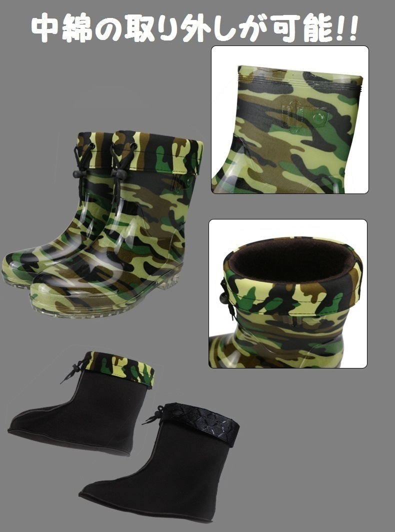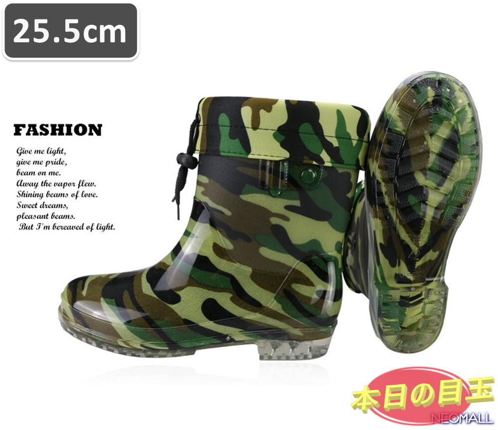 1スタ ☆【482】メンズ レインシューズ 迷彩 25.5cm オシャレ ショートブーツ シンプル 梅雨 雨 長靴 雨靴 防水