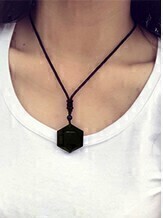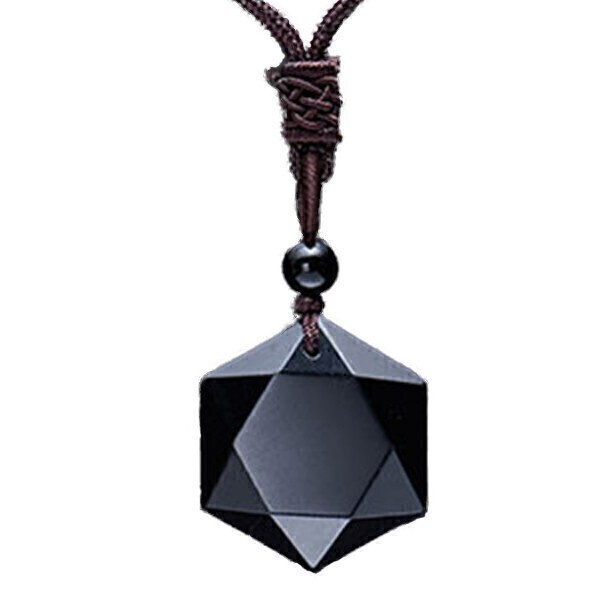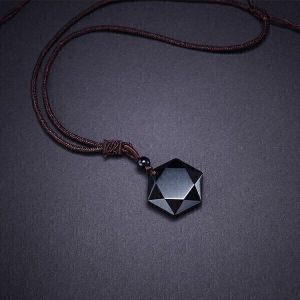 【Premio Fortuna】黒曜石 パワーストーン 六芒星ネックレス ペンダント 天然石 Hexagram ヘキサグラム男女兼用 316022☆