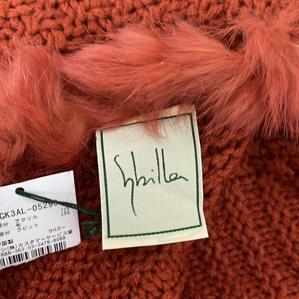 シビラ Sybilla ストール(ショール) - ウール、ラビット レッドオレンジ 美品 マフラー