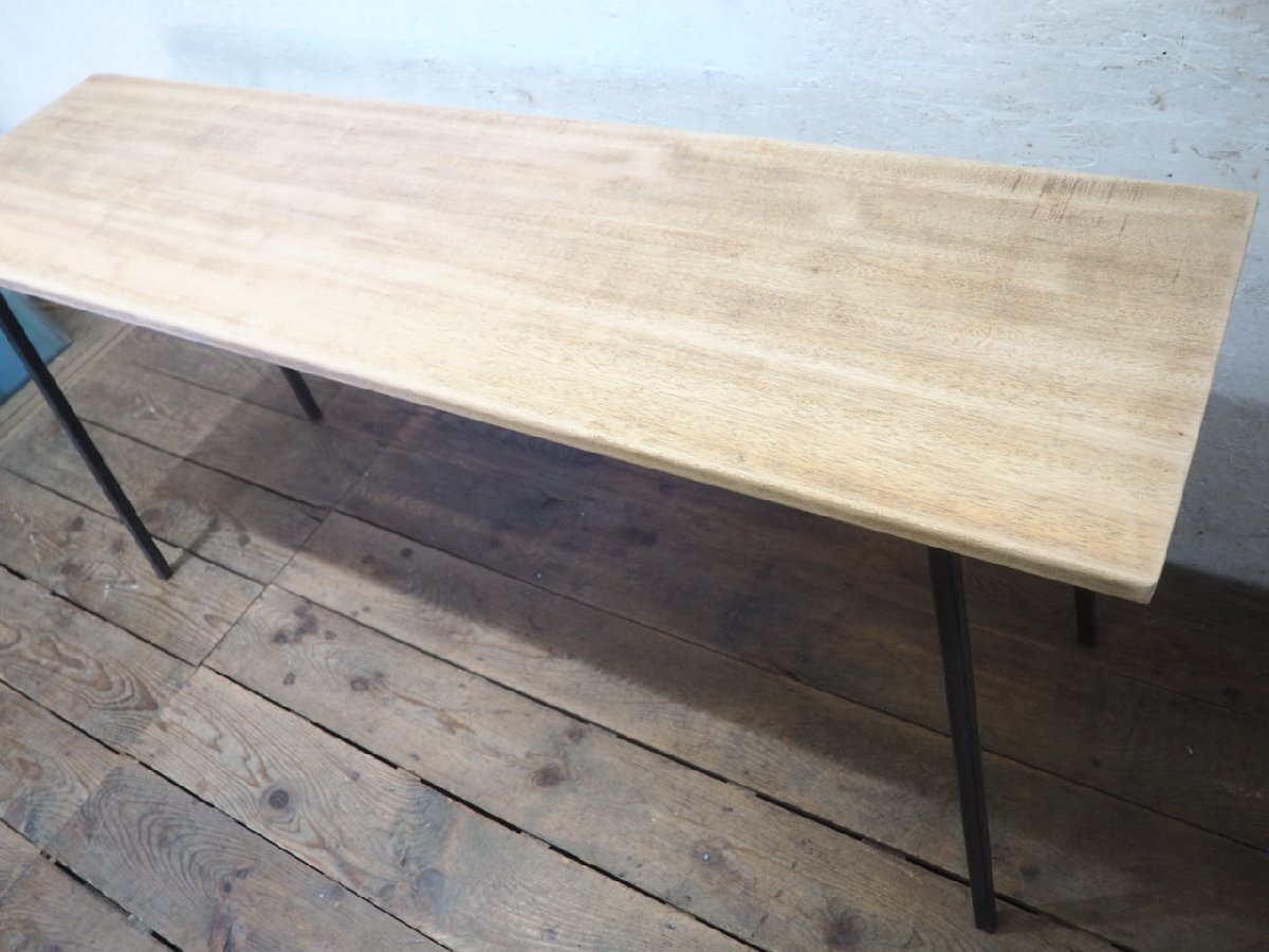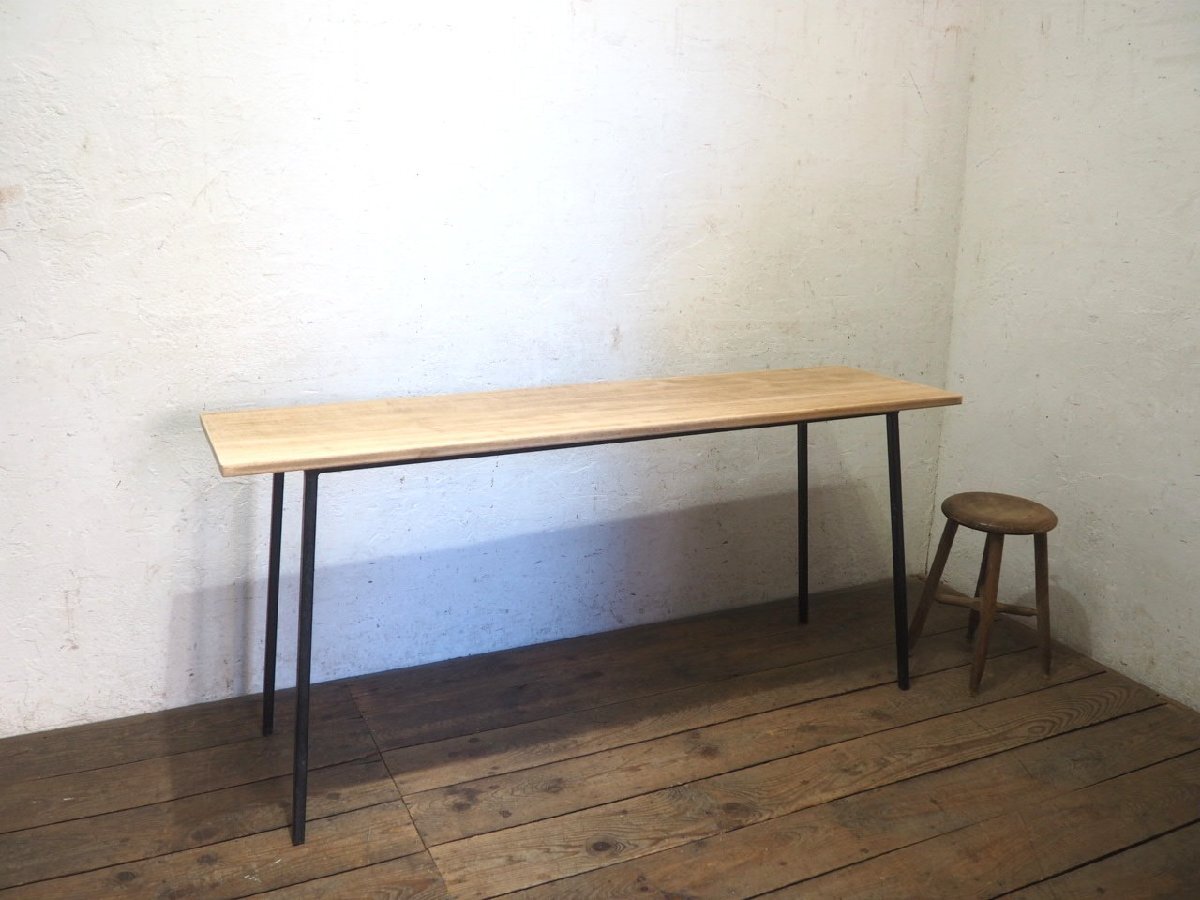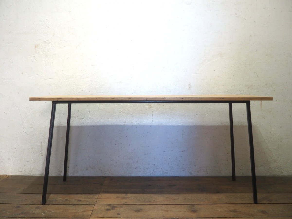 タW1884◆①天板W159,5cm×D43,5cm◆ヴィンテージ◆無垢天板のレトロな古い鉄脚テーブル◆工業系 デスク 展示台 インダストリアルQ松