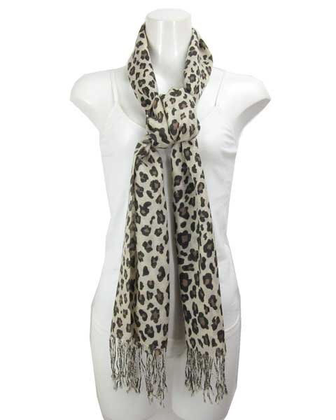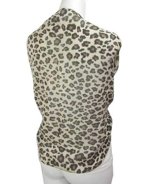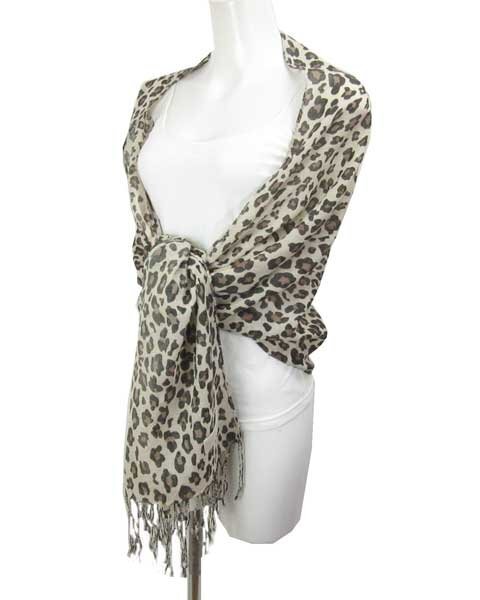 | ヒョウ柄デザインのオシャレなストール。秋口や春先におすすめのやや薄手のお生地になります。お洋服とコーディネートしやすいお色目です。 |