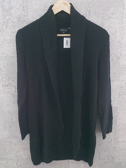 ◇ INDIVI インディヴィ 長袖 ショールカラーカーディガン 38 ブラック *