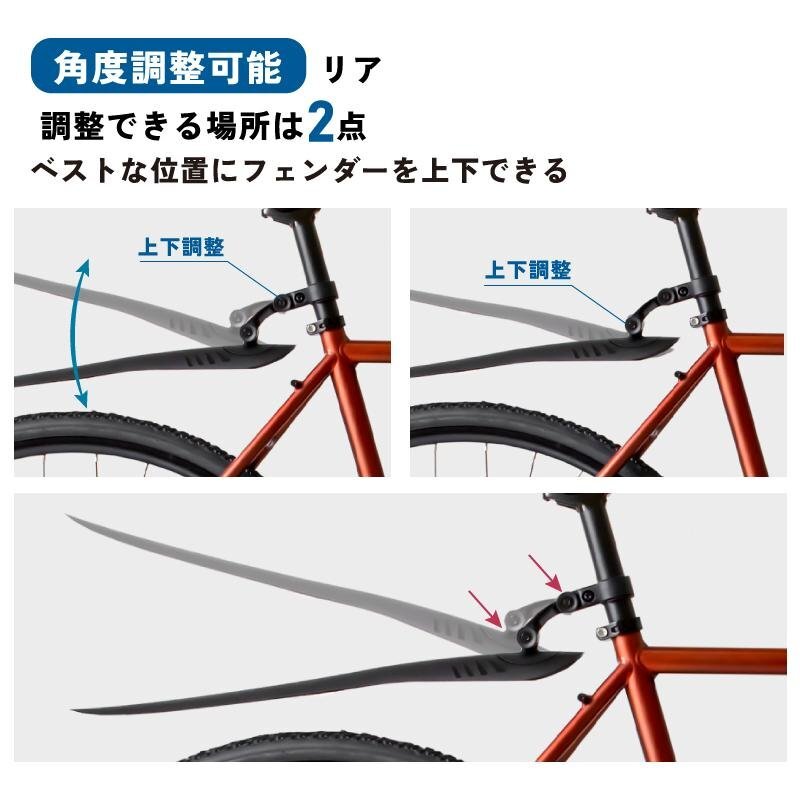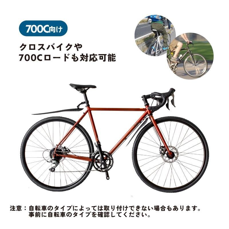 | 濡れた路面を走る時に前輪や後輪から跳ね上げられる泥や雨水をお尻や背中にかかるのを防ぐアイテム泥よけです。 制服やスーツで自転車に乗る自転車通勤や自転車通学での利用には是非取り付けたいフェンダー。 衣服やリュックを汚さずに雨上がりでも安心して乗車できます。雨が多くなる梅雨の季節で最も活躍します。 700c対応でクロスバイクやロードバイクに装着する事が可能です。 (※自転車のタイプによっては取り付けできない場合もあります) 泥除けはエアロデザインですっきりとスタイリッシュな印象に。 フロント、リアのセットで取付けできます! [素材] 耐熱性、強度が高く耐久性に優れています。 柔軟性があり曲げや折れにも強い。 割れたり折れたりが無く破損しにくく扱いやすい素材となっています。 ※ジャンク品の為、付属品が足りない等ある場合がございます。ノークレーム、ノーリターン 部品取り | |