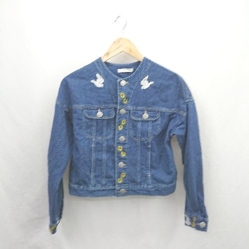 ◇ ⊇ didizizi ディディジジ 綿100% デニム 花柄刺? 長袖 ジャケット サイズF ブルー系 レディース E
