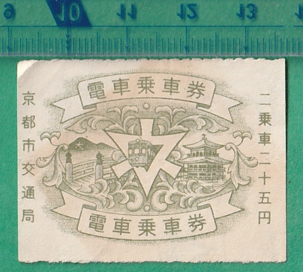 鉄道軟券切符60■京都市交通局 電車乗車券 二乗車 二十五円