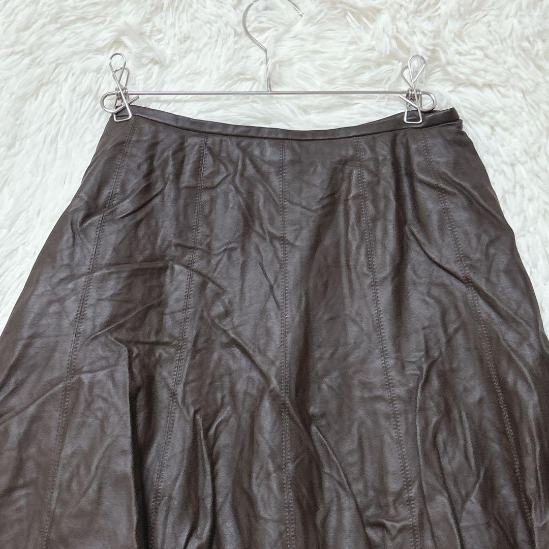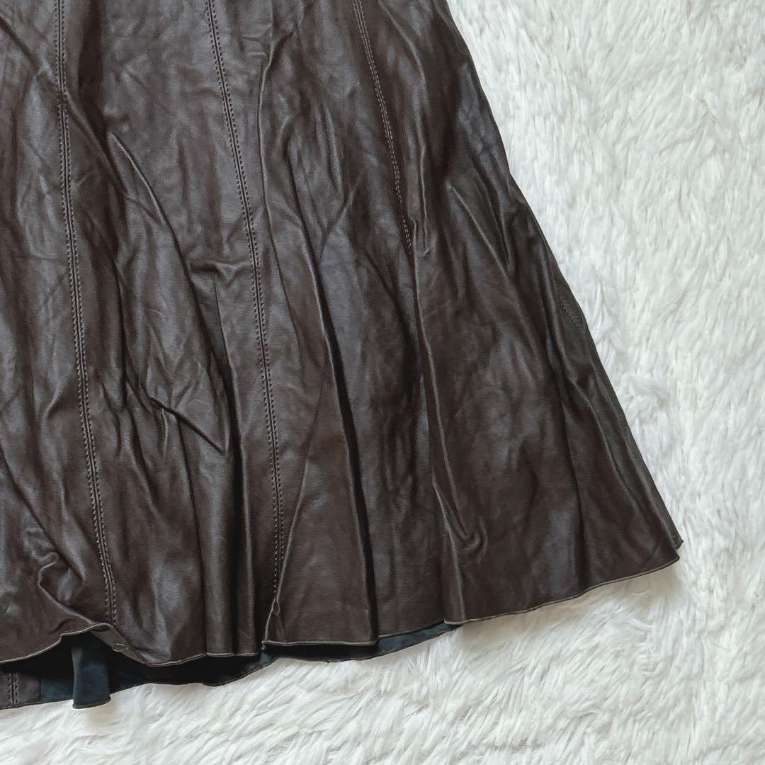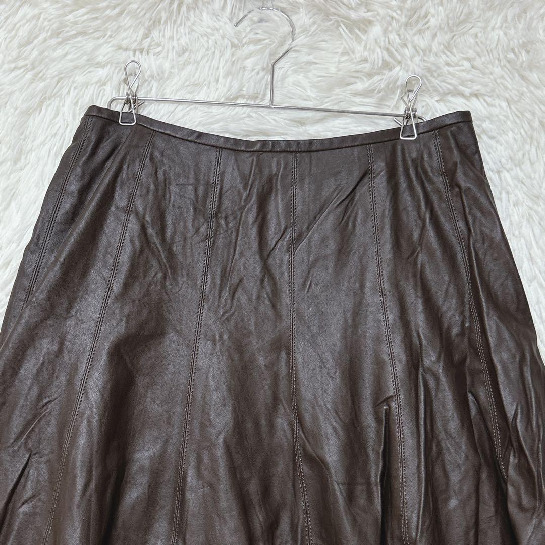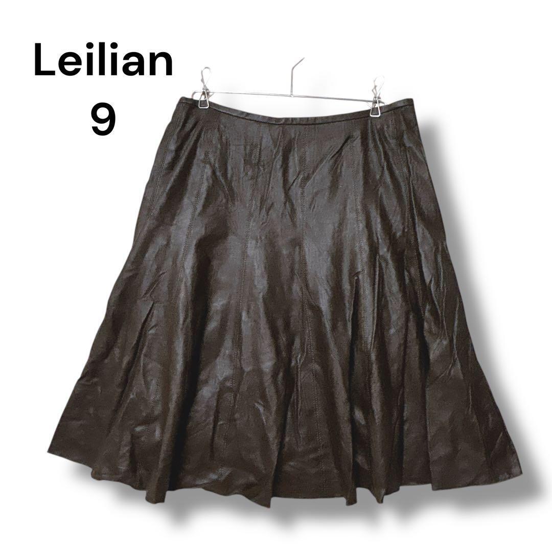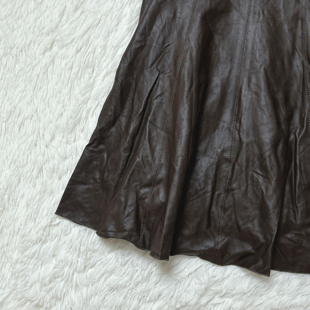 希少 レリアン スカート フレア ひざ丈 9 ブラウン 合成皮革 160AE5