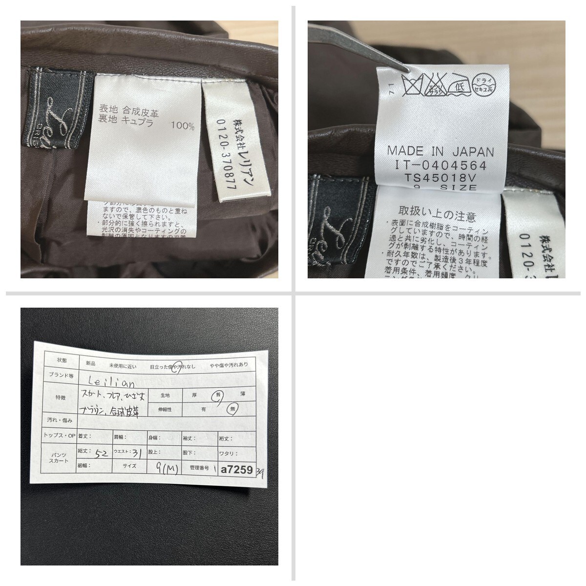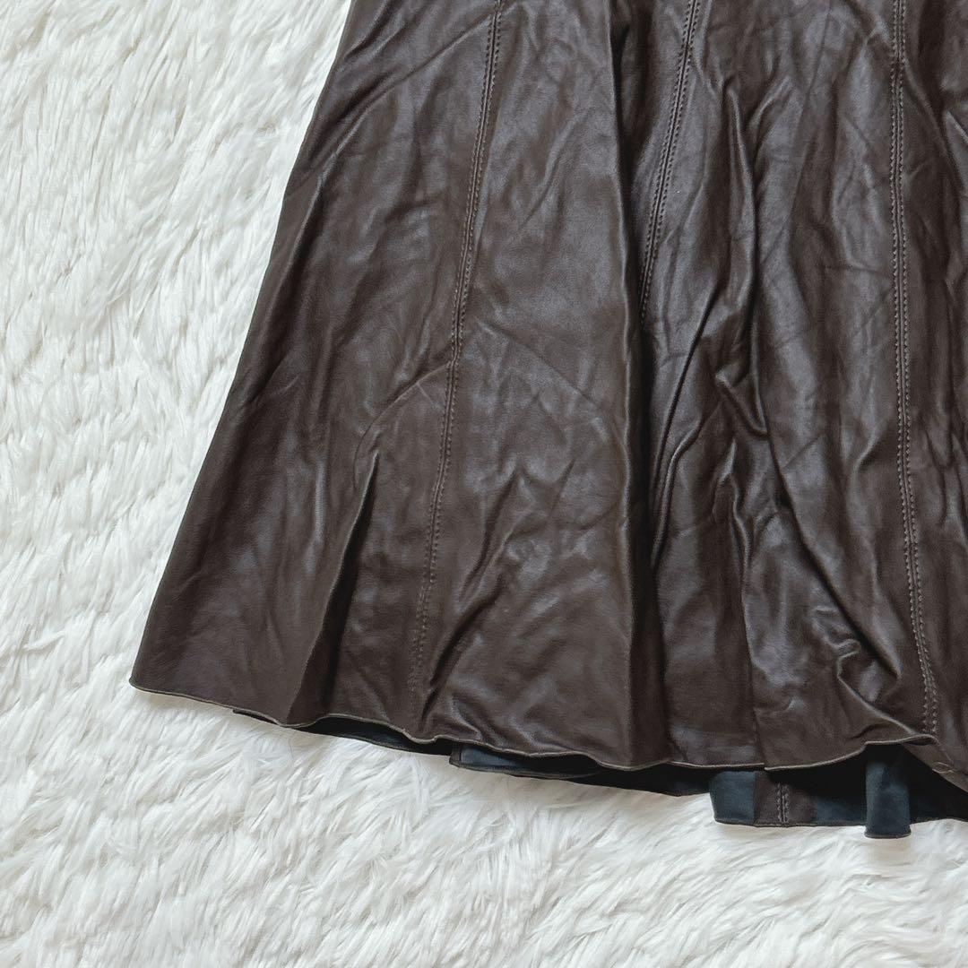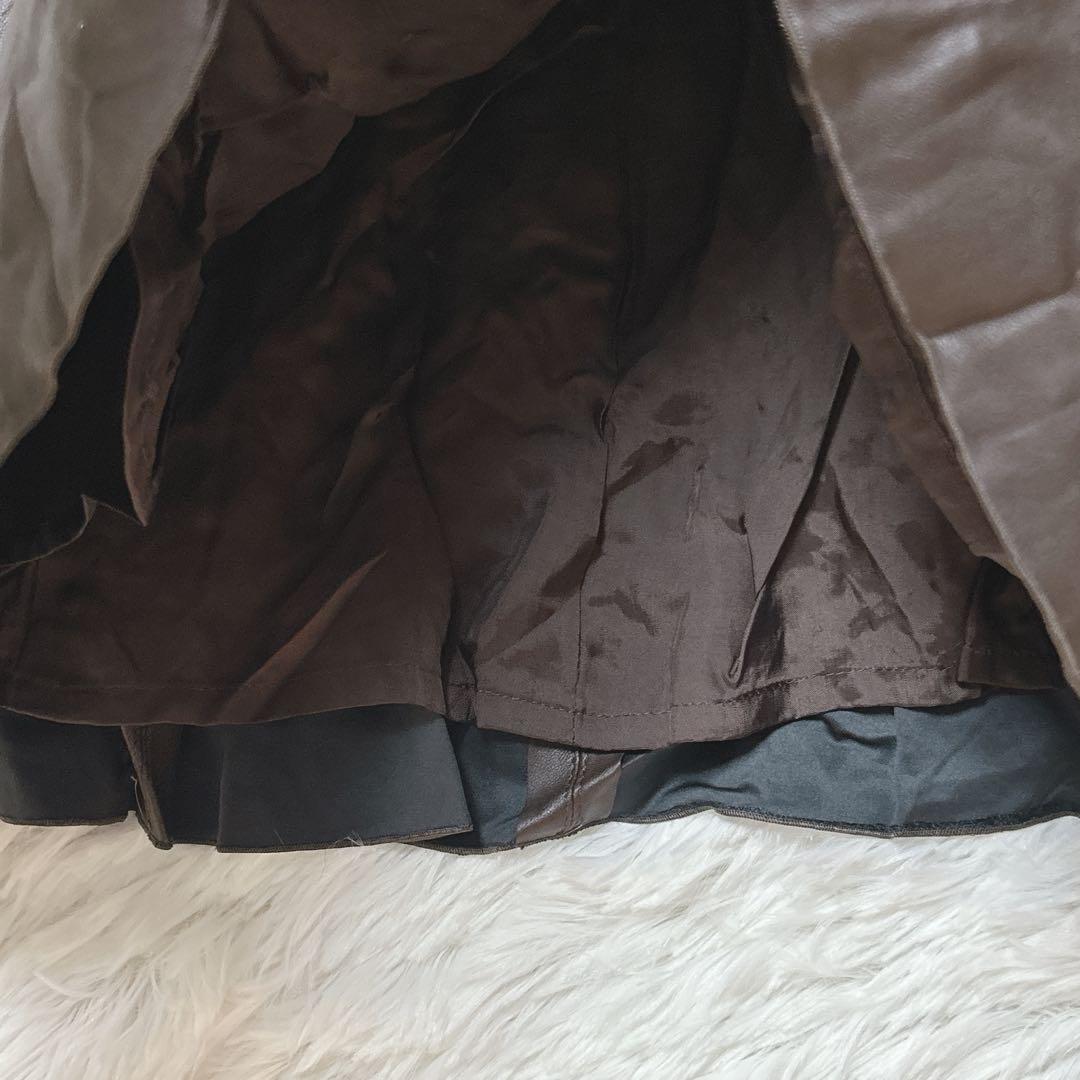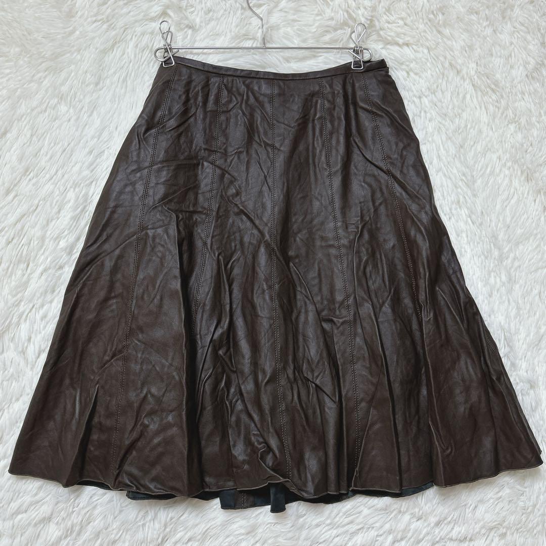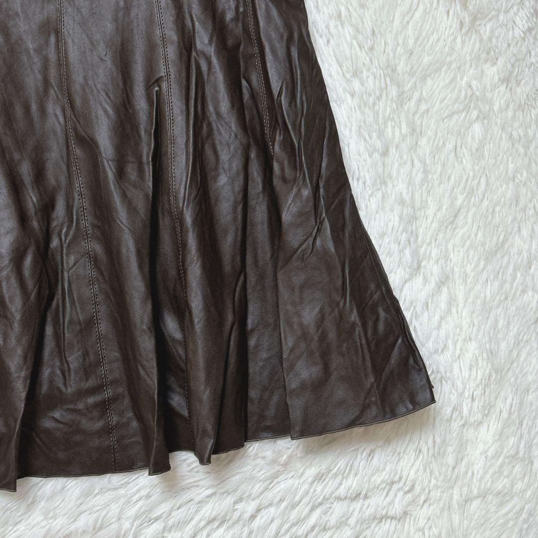 希少 レリアン スカート フレア ひざ丈 9 ブラウン 合成皮革 160AE5