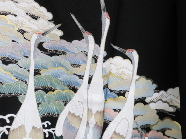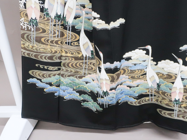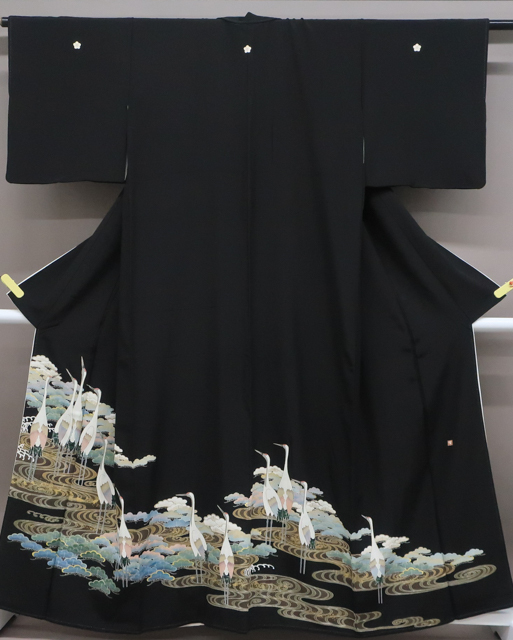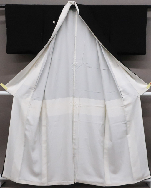 リサイクル商品のため、胴裏にシミがございますがご着用いただけると存じます。 地色は、黒色です。 1枚目の画像が近いお色かと思われます。 素材は正絹です。 |