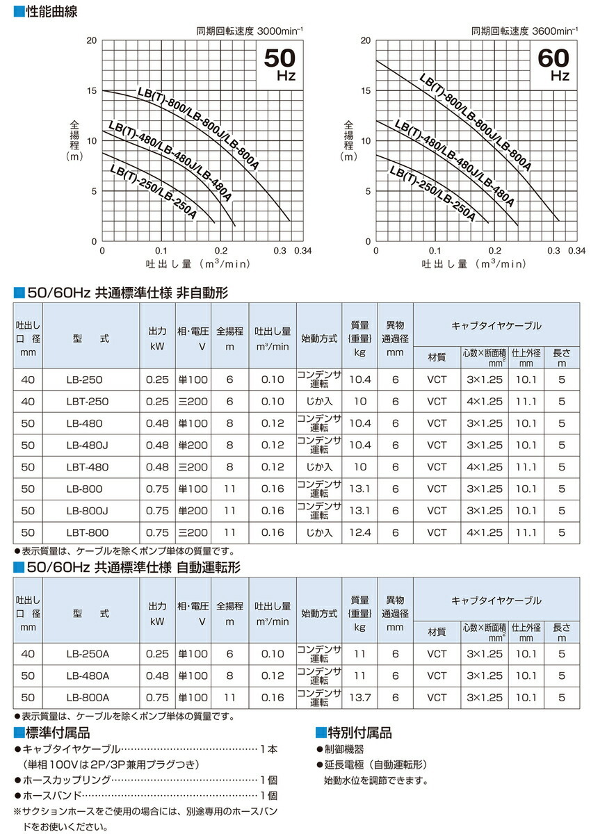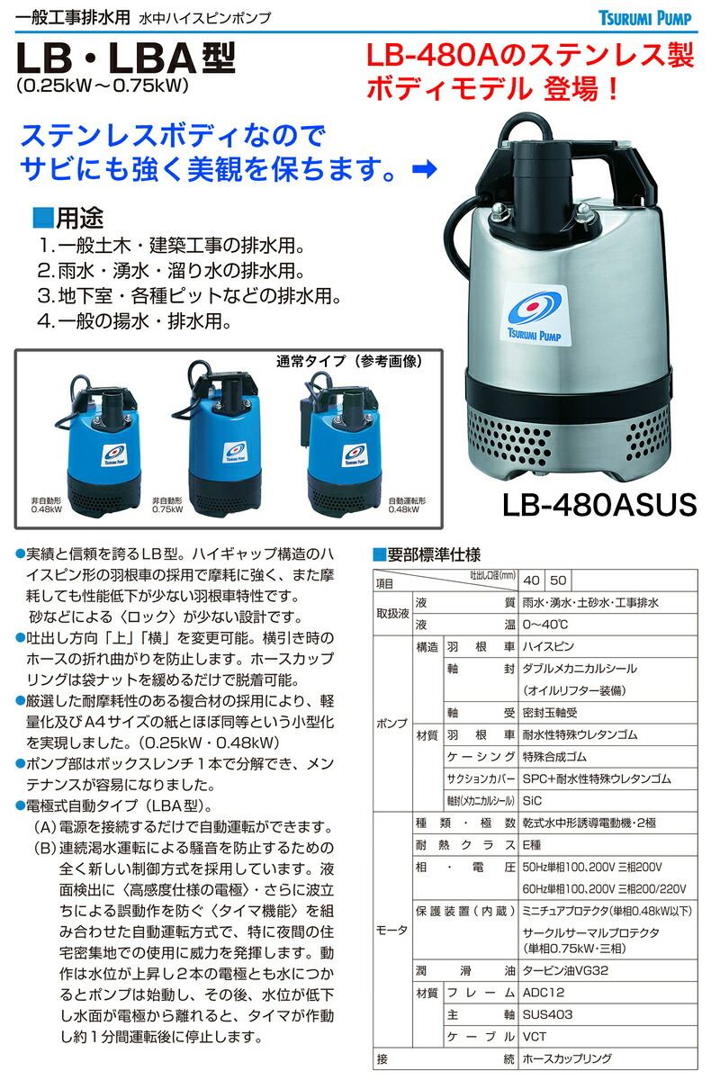 鶴見製作所 水中ポンプ LB-480ASUS《LB-480Aのステンレス製ボディモデルです。》(50径)60Hz用 ステンレスボディなのでサビにも強い!!