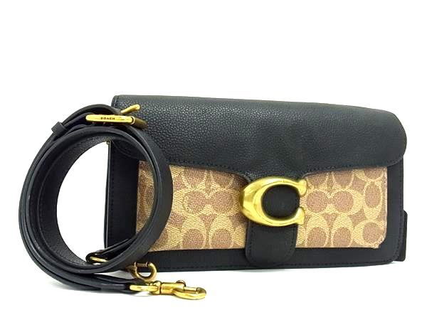 1円 ■美品■ COACH コーチ 79338 タビー シグネチャー レザー 2WAY クロスボディ ショルダー クラッチバッグ 斜め掛け ブラック系 GD0016