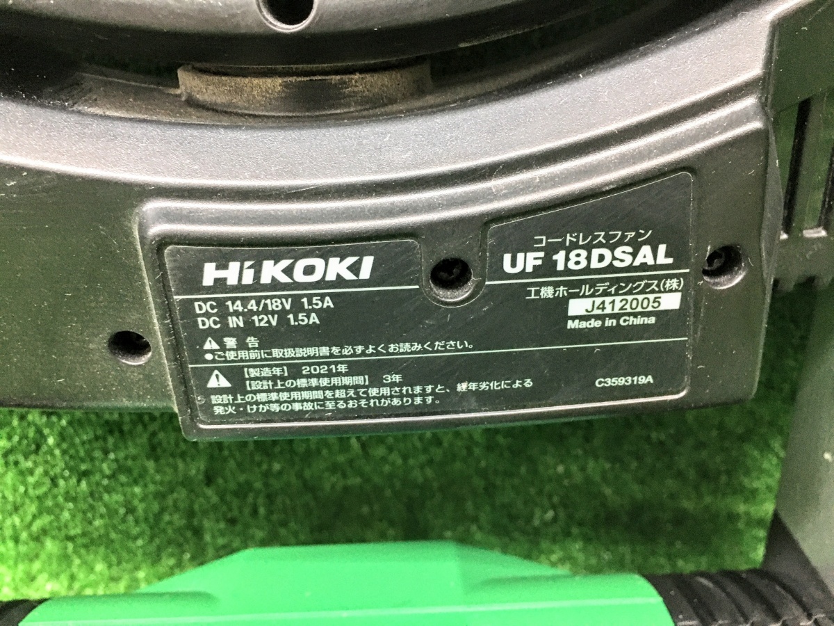 中古品 HiKOKI ハイコーキ コードレスファン UF18DSAL ACアダプタ付 ※バッテリ・充電器別売