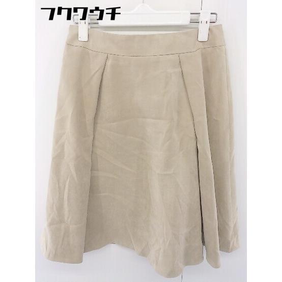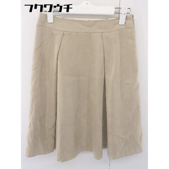 ◇ 自由区 ジユウク ジップアップ タック 膝丈 フレア スカート サイズ 36 ベージュ レディース