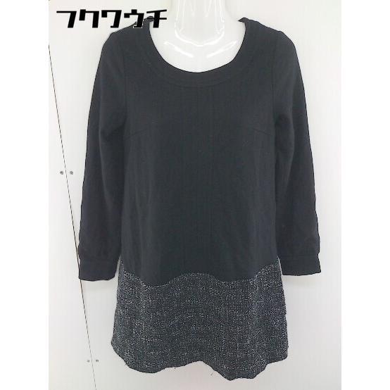 ◇ MICHEL KLEIN 切替 スタンドカラー ニット 長袖 ミニ ワンピース チュニック サイズ 38 ブラック ホワイト レディース
