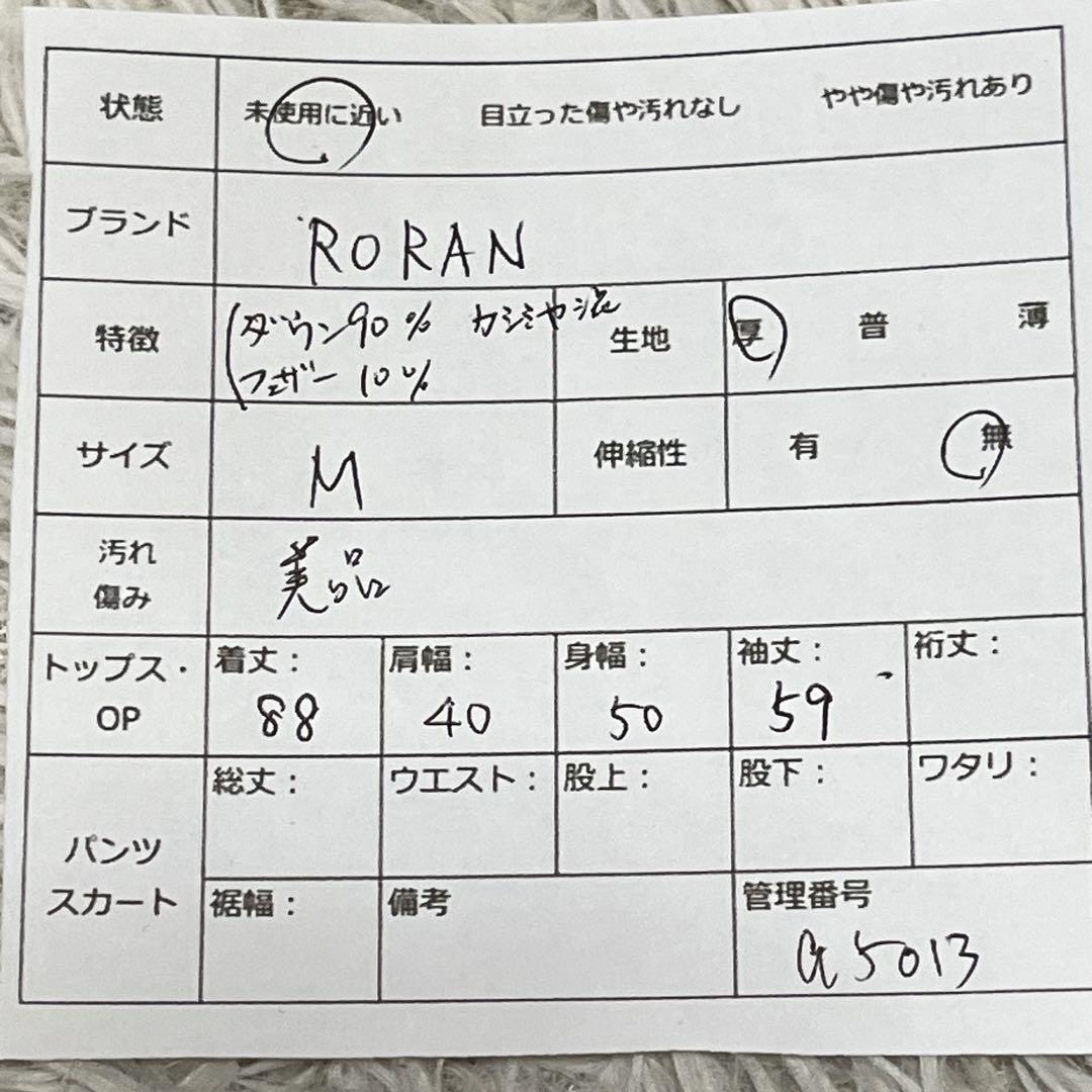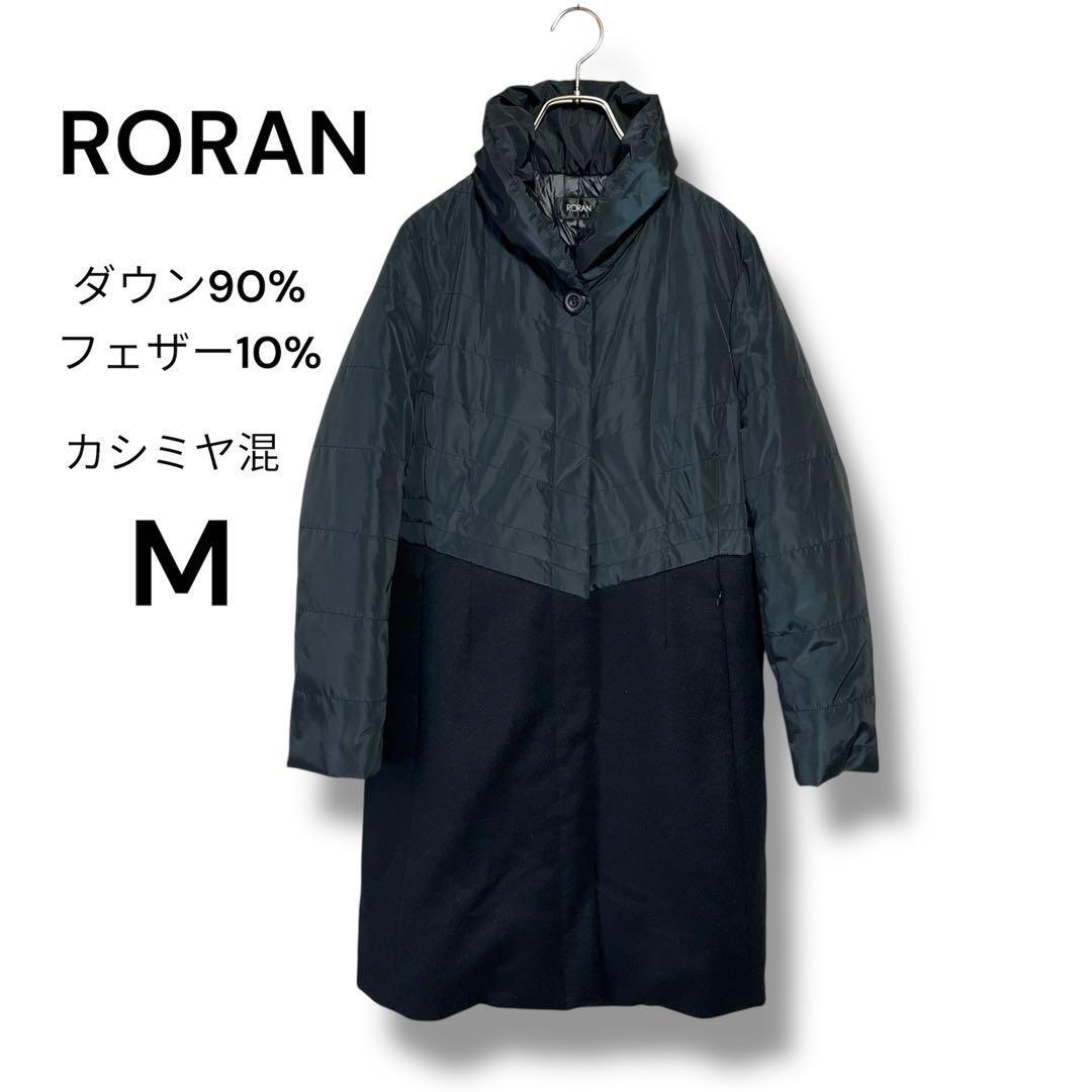 【美品】RORAN ダウン×カシミヤ切替ロングコート M ダウン90% 比翼仕立 A556B3