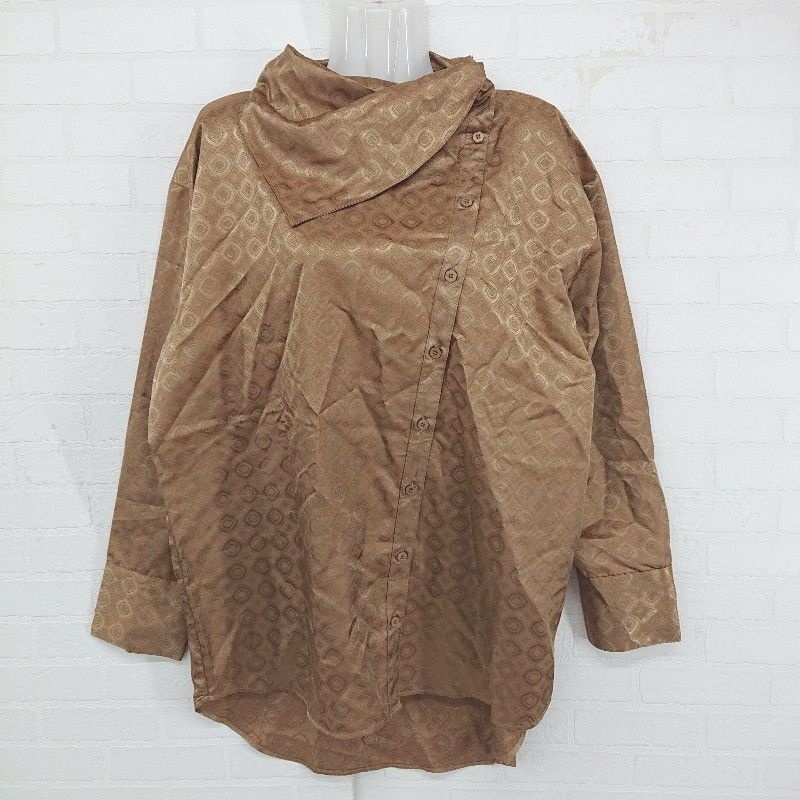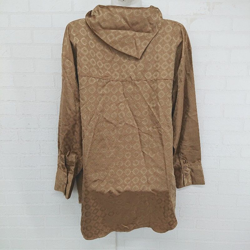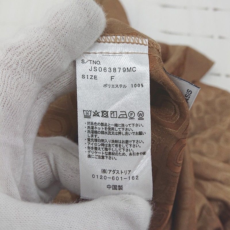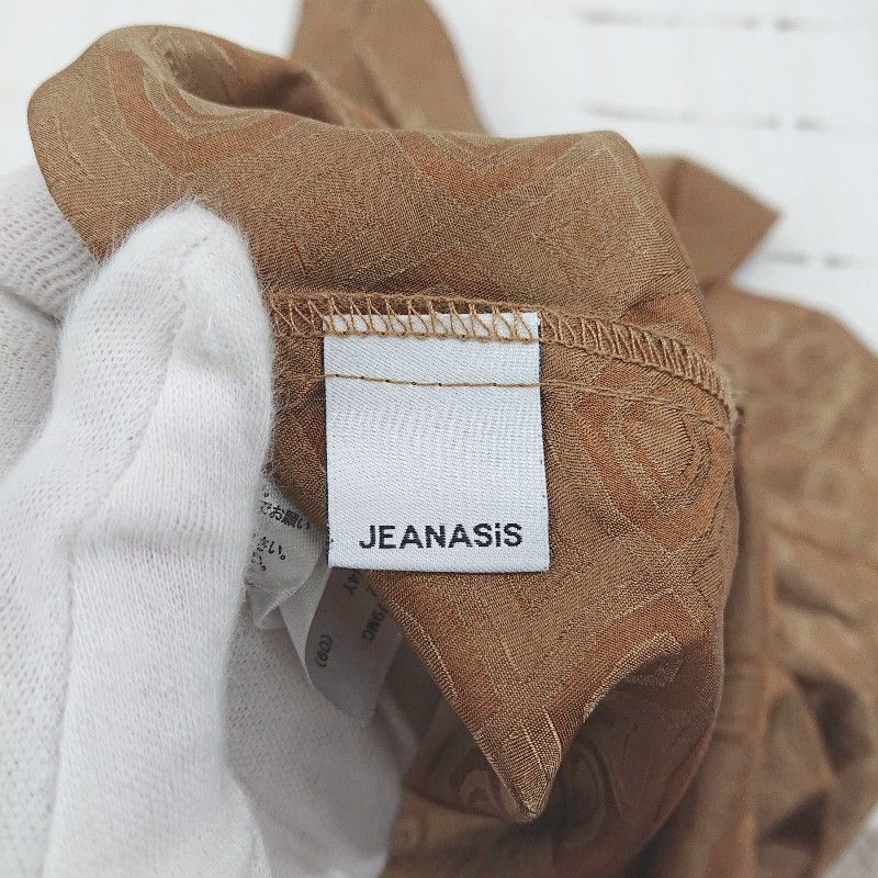 ◇ JEANASIS ジーナシス 総柄 サテン調 アシメカラー 長袖 シャツ ブラウス サイズF ブラウン系 レディース E