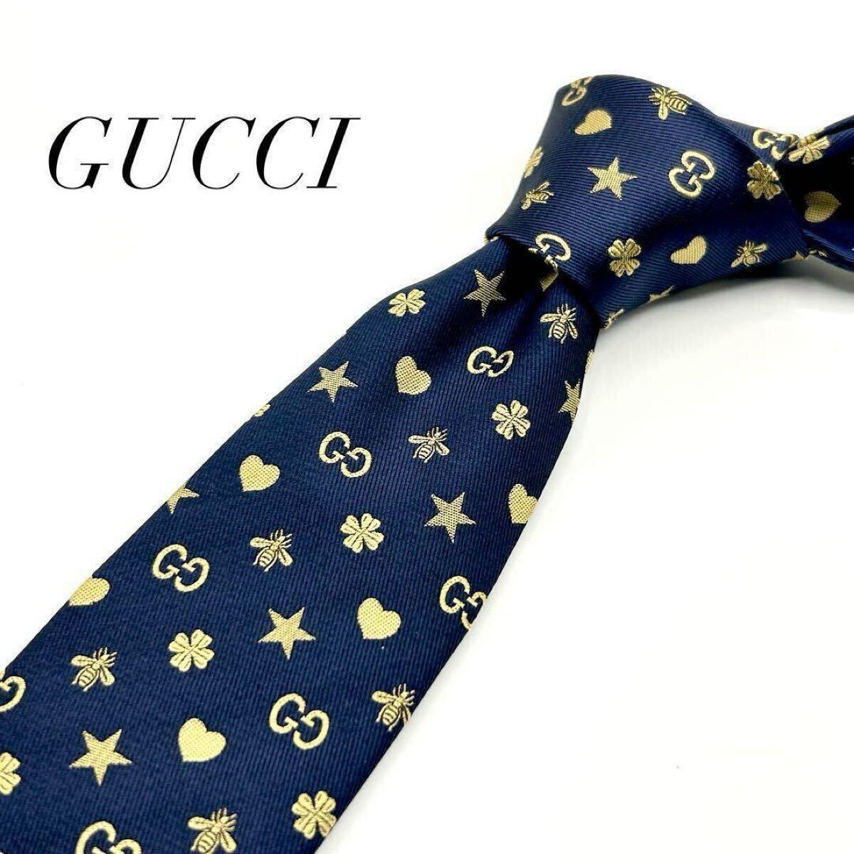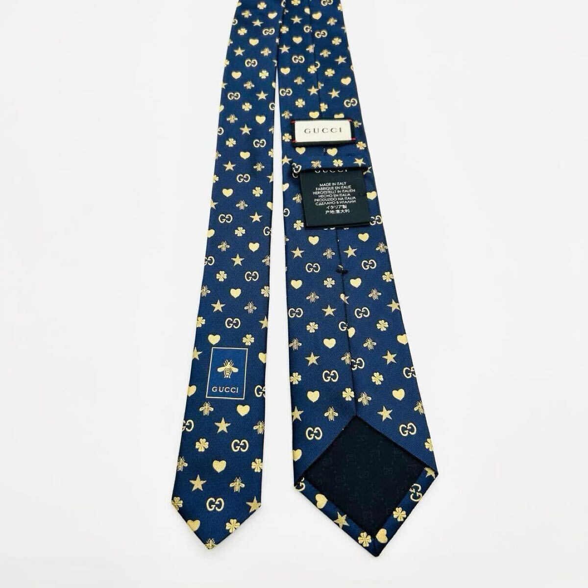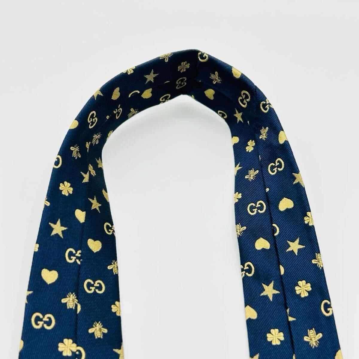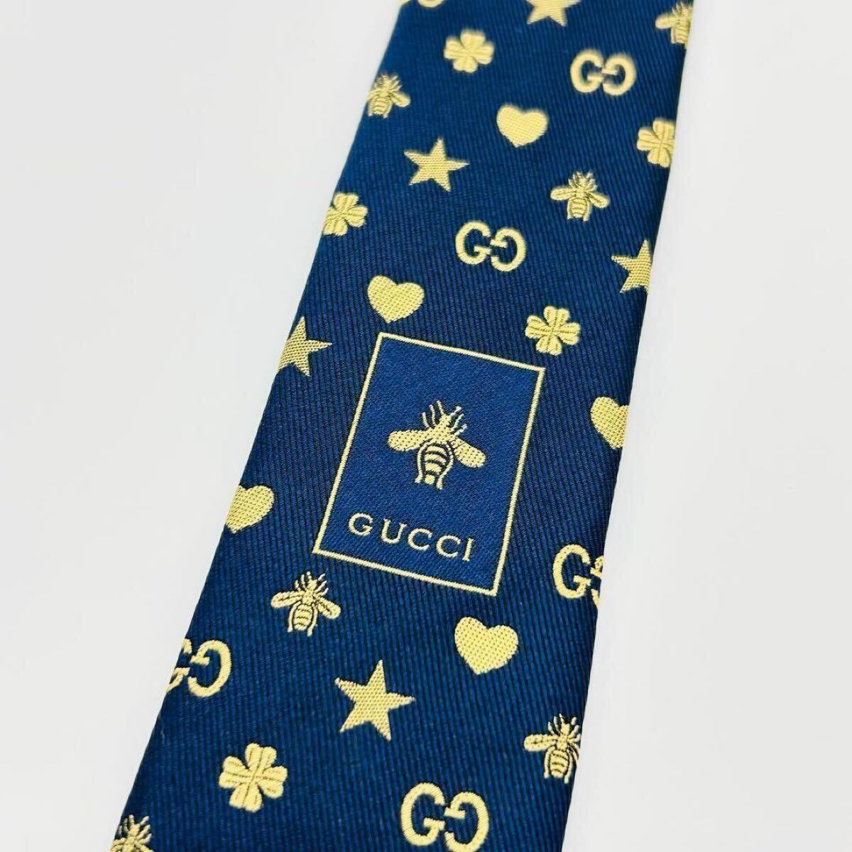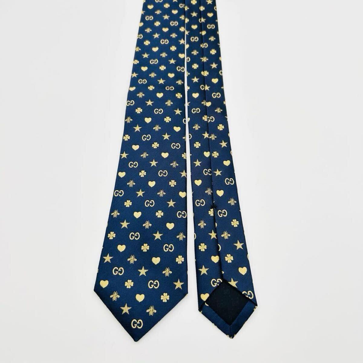 1円 美品 GUCCI グッチ GG柄 星 スター ハチ 蜂 bee 現行タグ ネクタイ メンズ ビジネス プレゼント クリスマス 結婚式 パーティー 誕生