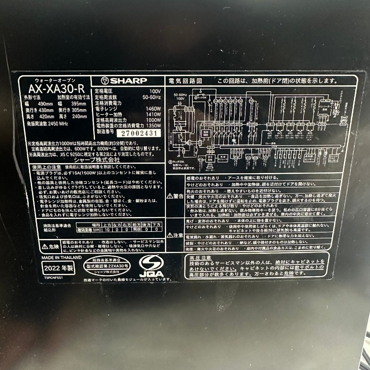 θRθ SHARP ウォーターオーブン ヘルシオ AX-XA30-R 2022年製 動作確認済み θS-251144