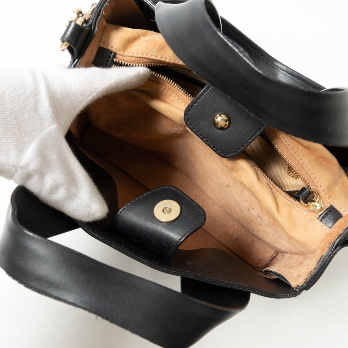 | 状態 | C 持ち手のレザー剥離、全体的にスレやキズ、薄汚れ、バッグ内のシミ汚れ、金具のサビ、使用感がございます。 |