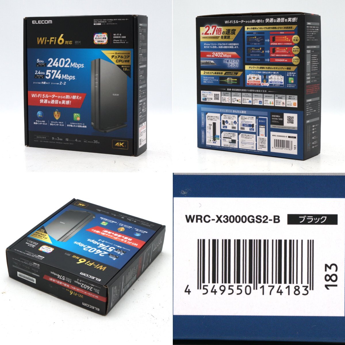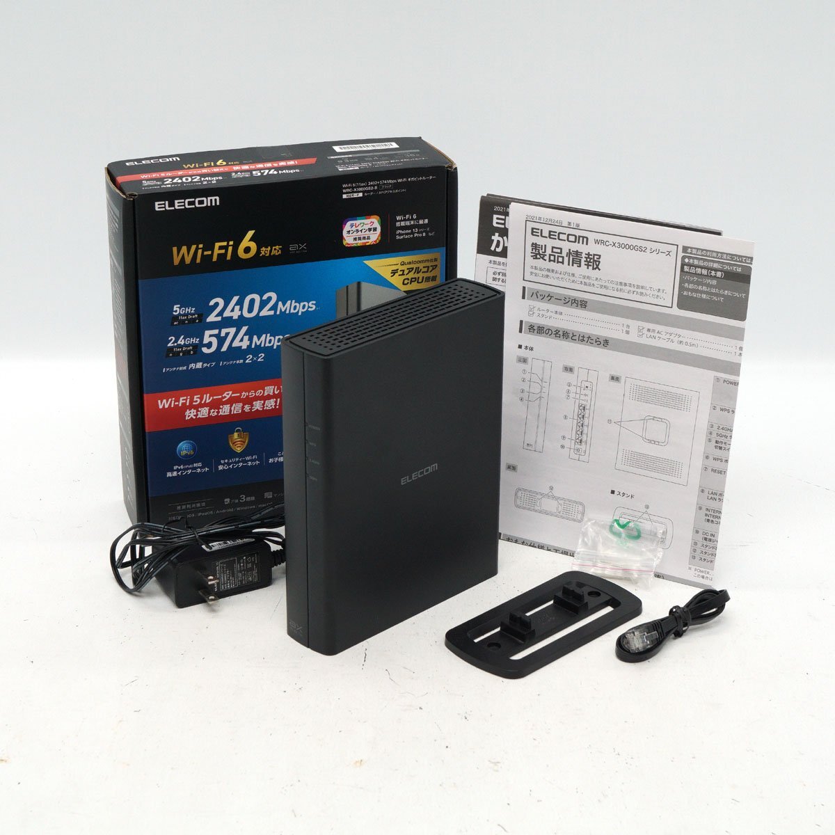 | 【美品】ELECOM Wi-Fiギガビットルーター WRC-X3000GS2-B Wi-Fi6(11ax) 2042+574Mbps |