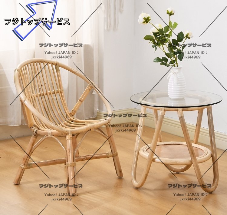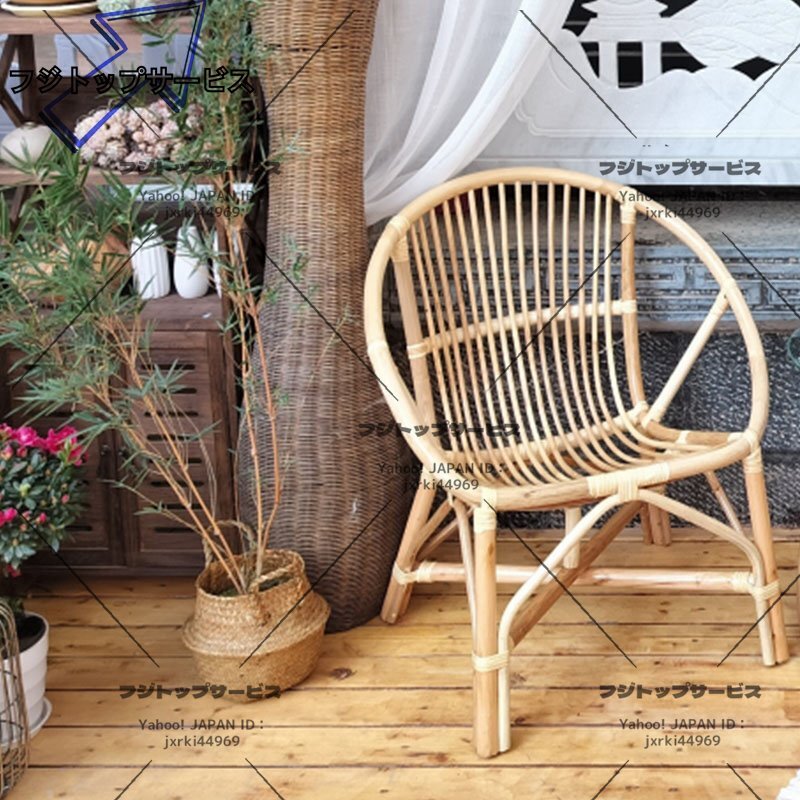 手作り籐 背もたれチェア 編椅子 籐製イス アームチェア ラタン家具 天然素材 2色選択可能 カジュアル椅子