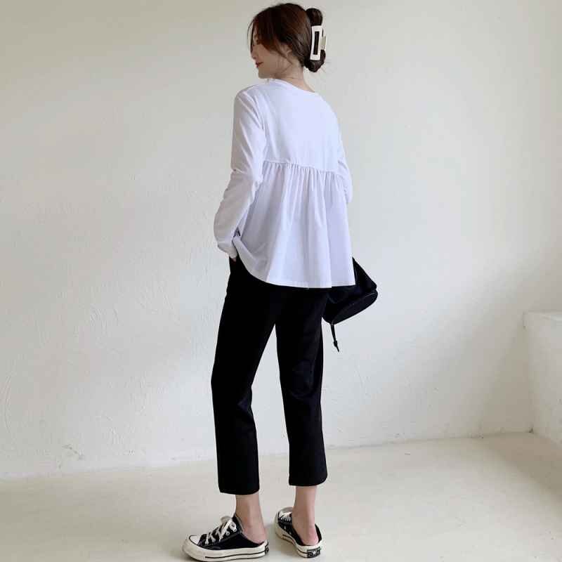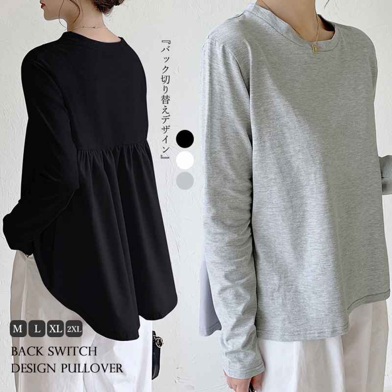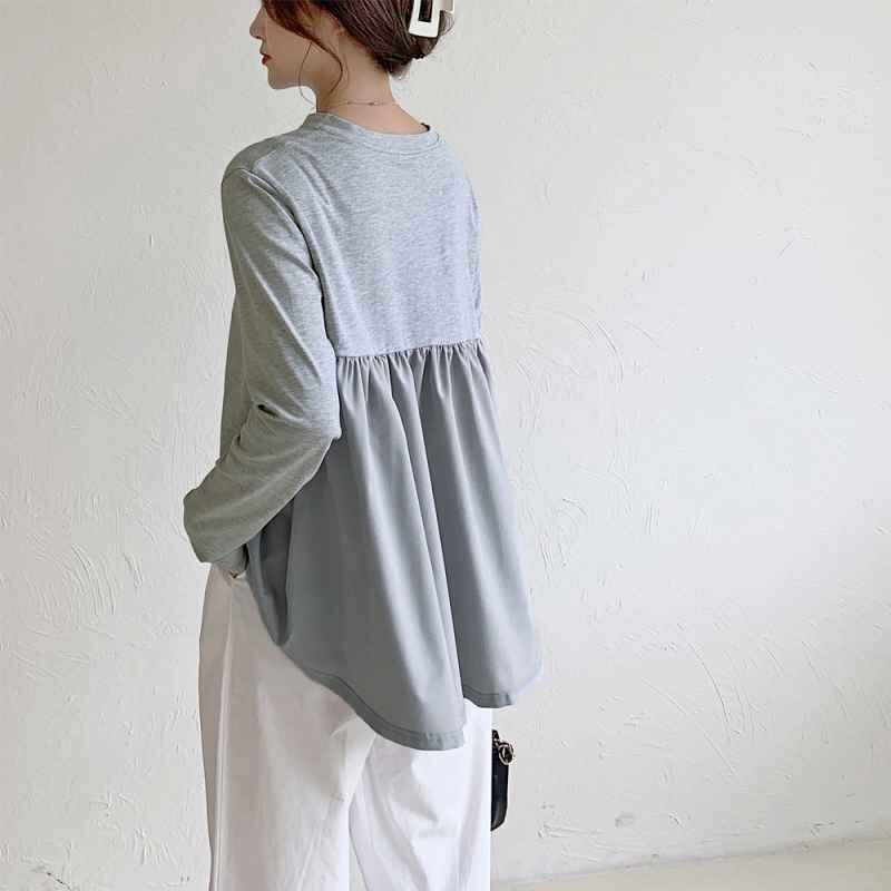 シンプルデザインにバックタックでstyleがすっきりと決まる異素材mixラウンドネックTシャツ