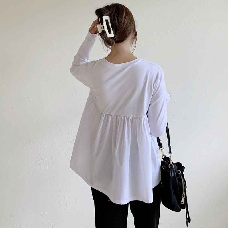ゆったりとした身頃にドロップショルダーデザイン、気になるボディラインをカバーしつつ華奢感を演出するらくちんファッションアイテムです。