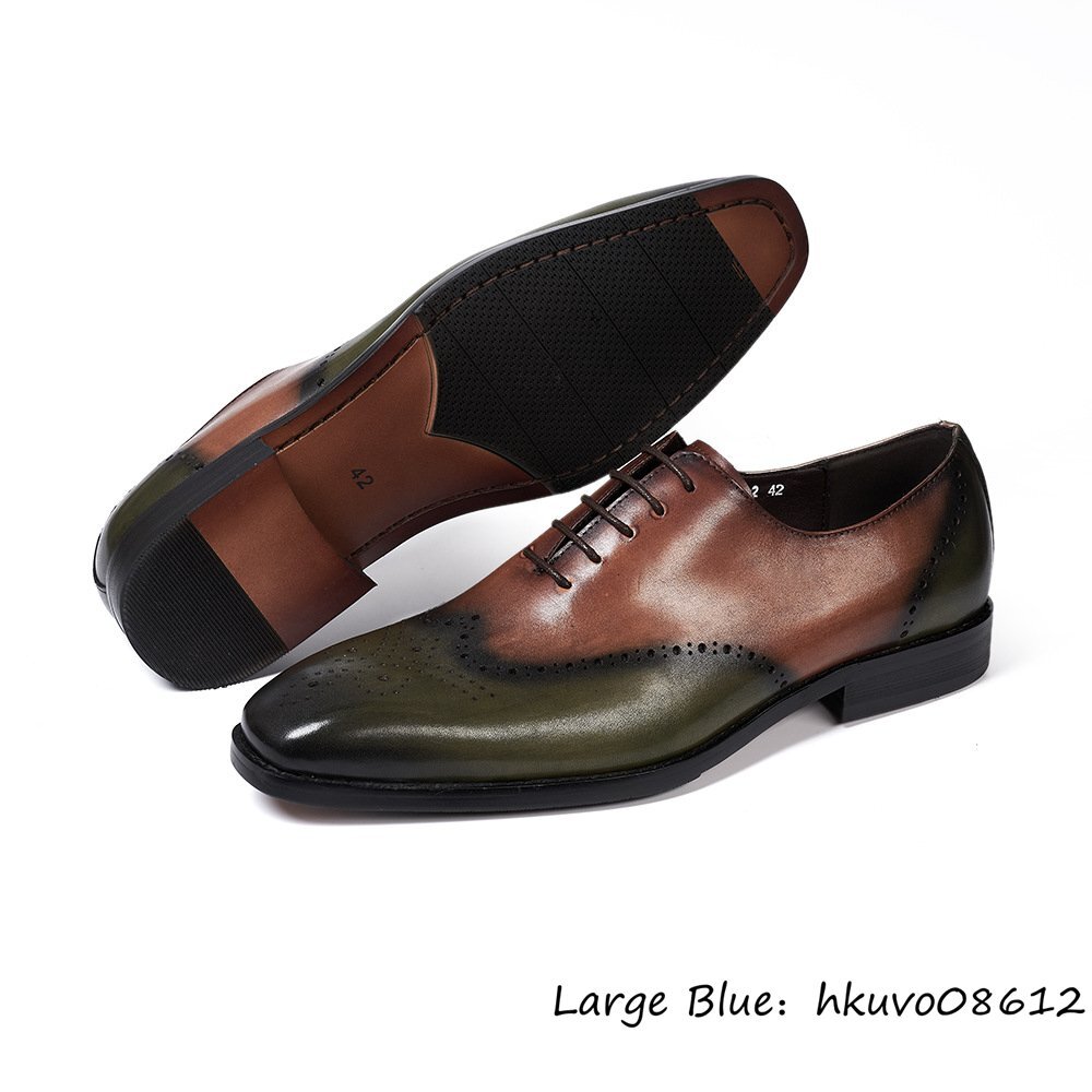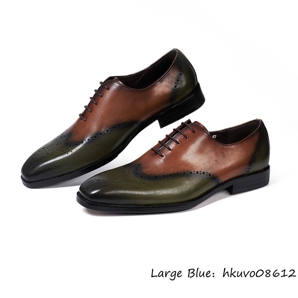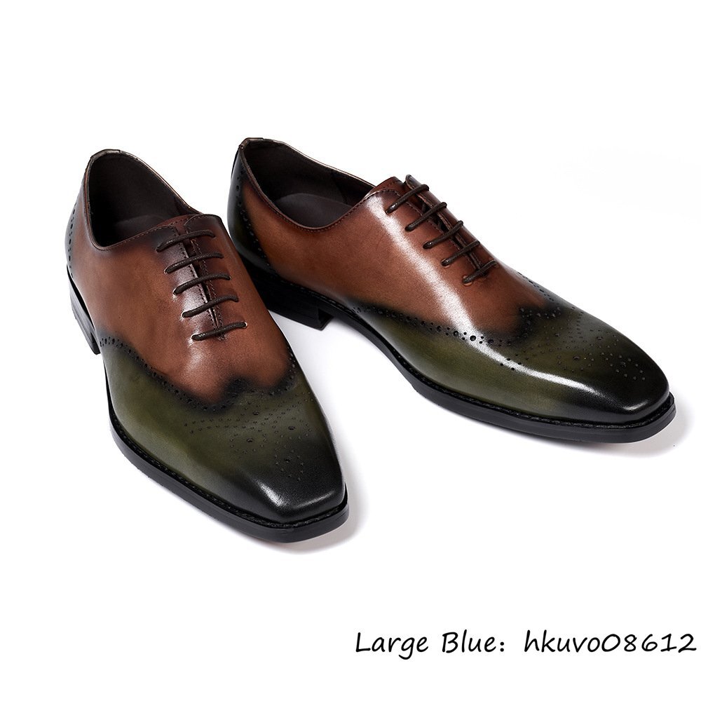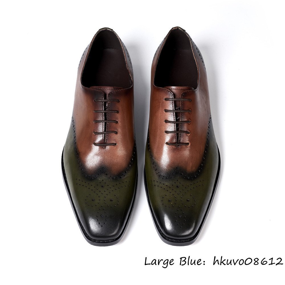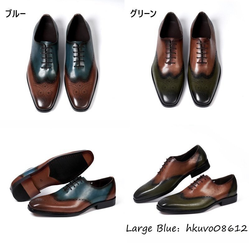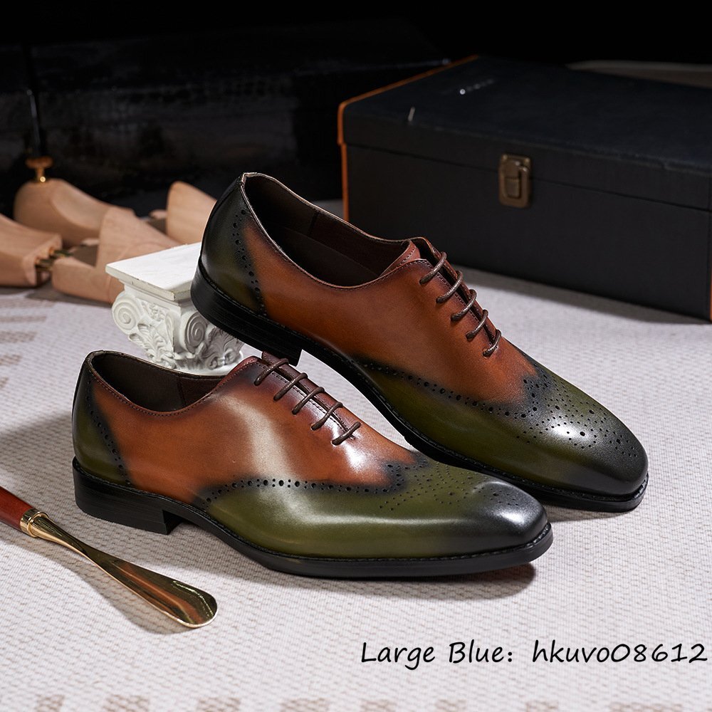 定価10万超◆ビジネスシューズ 本革 メンズ 手塗り上げ 職人手作り 切替 牛革 レザーシューズ 革靴 紳士靴 ドレス 宴会 グリーン 27.5cm