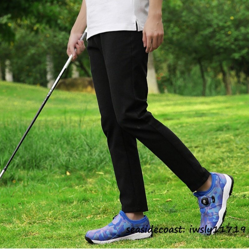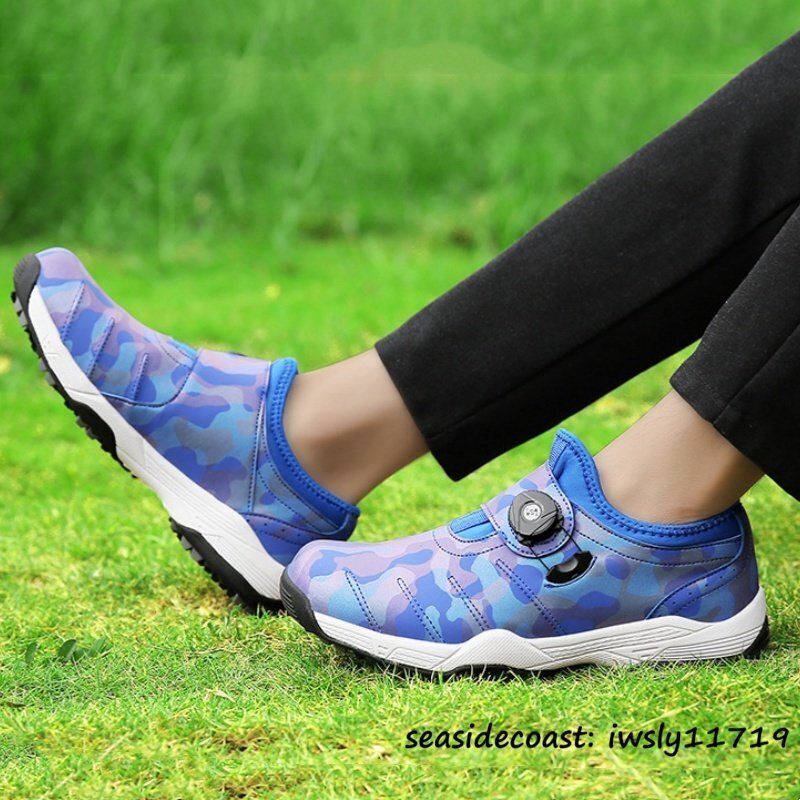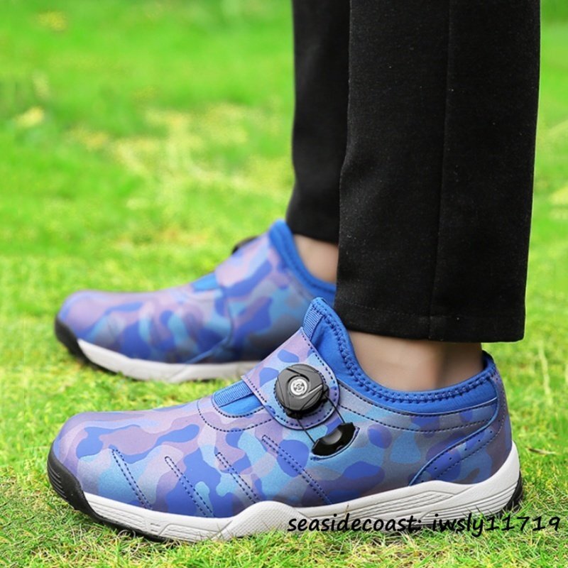 新作 迷彩柄 運動靴 ゴルフシューズ メンズ スパイクレス ダイヤル式 男女兼用 スポーツシューズ 4E 幅広 軽量撥水 通気性 ブルー 28.0cm