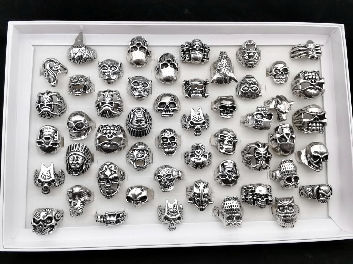 新品 メンズ メタルリング 豪華50点セット ドクロやインディアンデザインのメンズファッションリング 豪華 50点セットです。 重厚で存在感のあるものを集めました。 指輪のデザインは写真を参考にしてください。 商品は写真の指輪をランダムに50点選んで発送いたします。 (サイズもランダムになります。場合によっては写真にはないデザインになることもあります。) 選ぶ際はなるべく写真と同じような比率になるように選ぶようにいたします。 (極端な偏りがあるような選び方はいたしません。) サイズ:約16~20mm 指輪総重量:約500g 材質:合金 個数:50点 ※写真のようにケースに指輪50点を収めた状態で発送いたします。 (ケースはロットによってデザインやカラーが違う場合があります。) ※ケースはおまけとして出品しますので、ケースの不具合に関しては対応はできません。 当店の他の出品商品との同梱料は下記のとおり落札1点につき200円です。 |