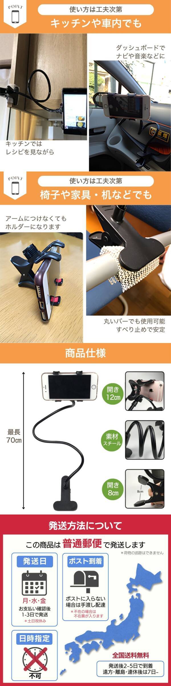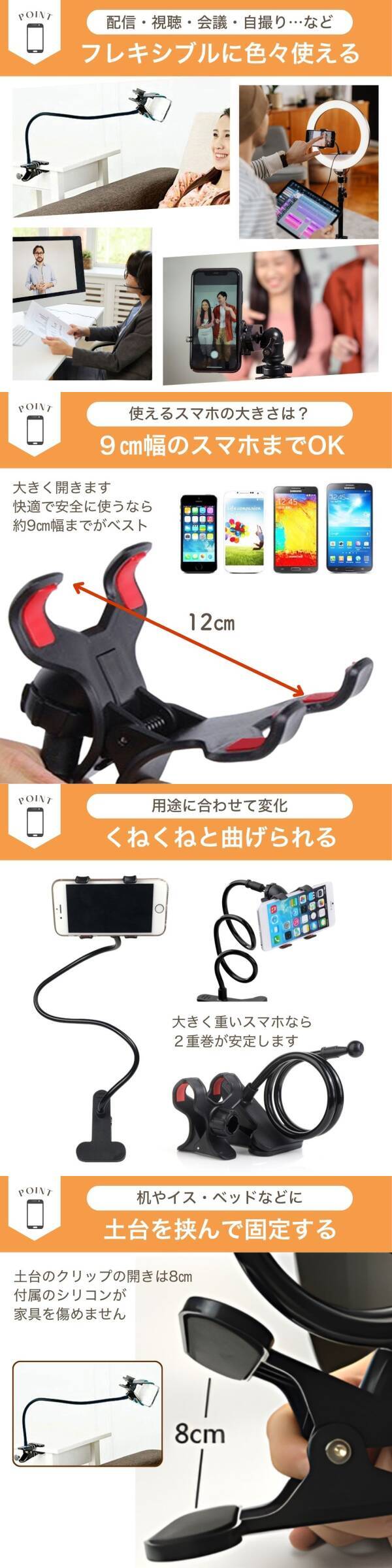 クリップ式のフレキシブルなスマートフォン用スマホスタンドです。
