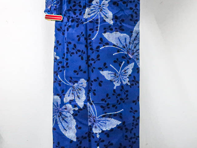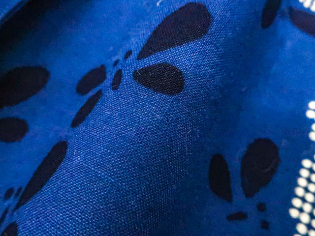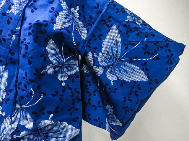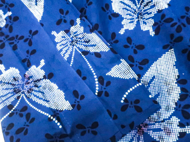 リサイクル商品のため、下前薄汚れがございますが着用可能なお品です。 肩当付でございます。 地色は青 です。 1枚目の画像が近いお色かと思われます。 素材は綿です。 |