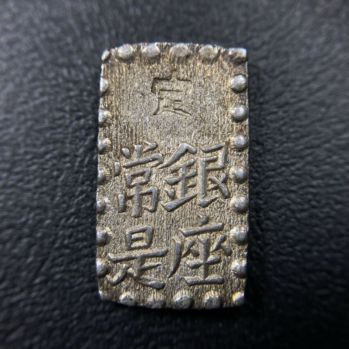こちらは嘉永一朱銀のIc型《表/欠金草尾銀・裏/跳ね是》になります。