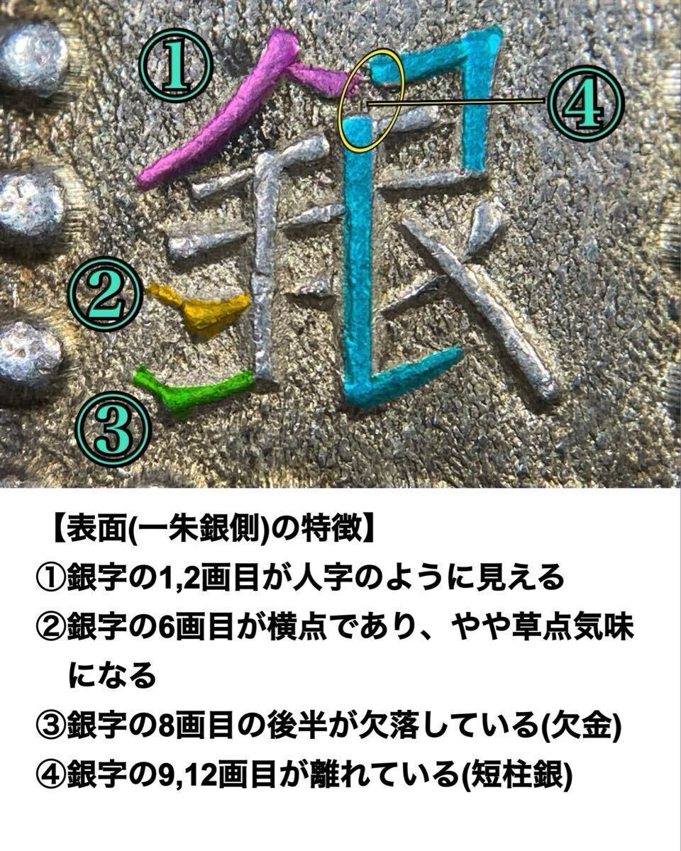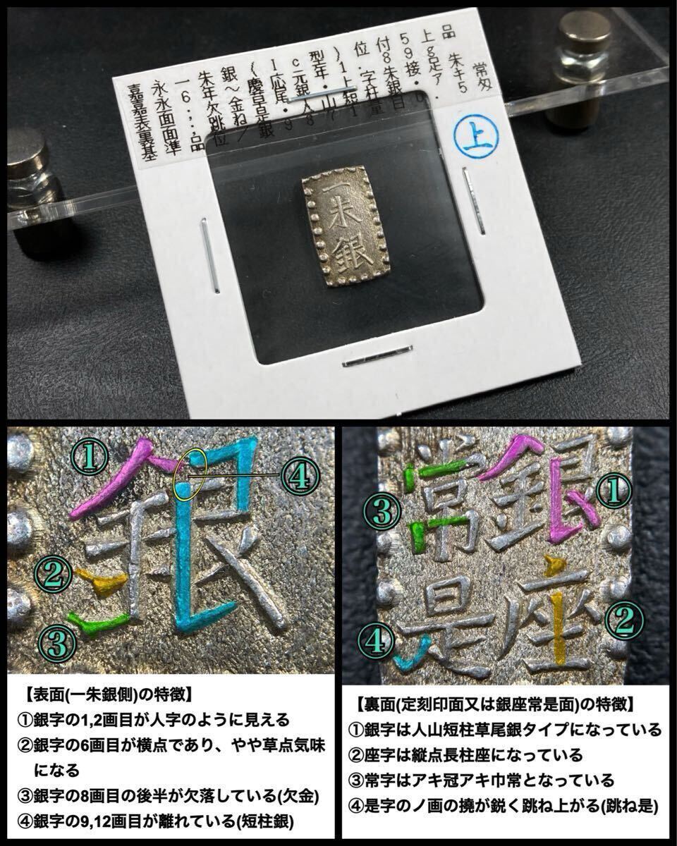 主人曰く、本銭の特徴を含めた嘉永一朱銀Ia型の特徴として、