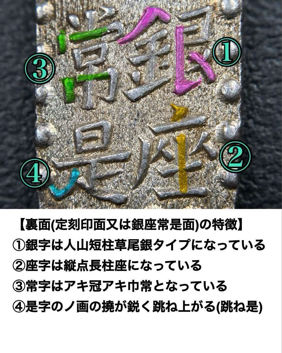 【裏面(定刻印面又は銀座常是面)の特徴】