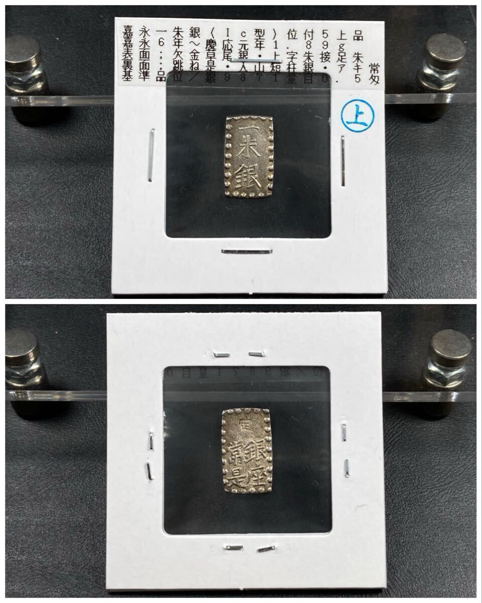 などがあり、嘉永一朱銀の玉列は両面とも横6個、縦9個の計26個となっています。また側面のヤスリ掛けは滑らかです。
